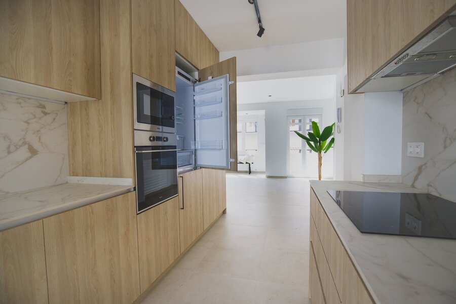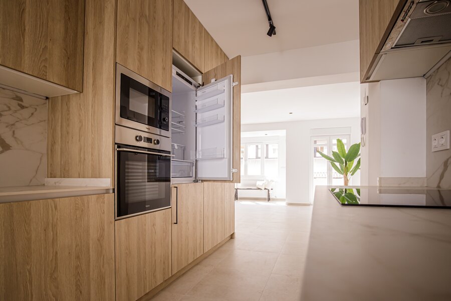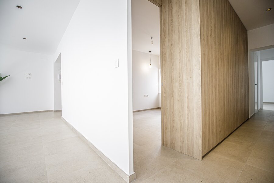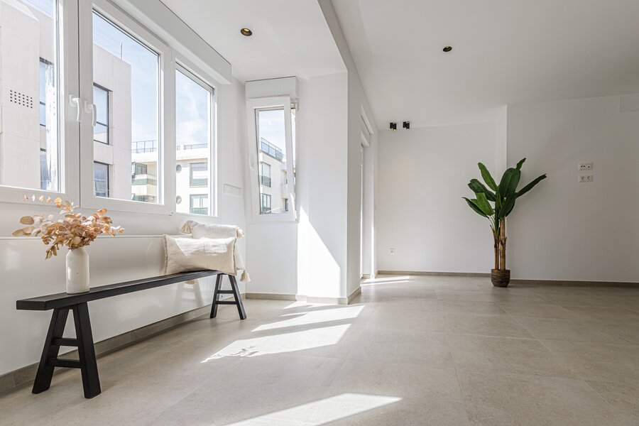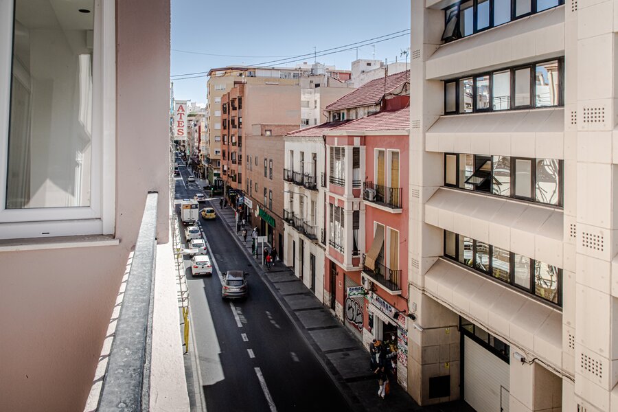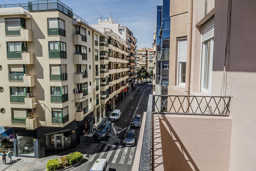 Apartment completely renovated to new. It is located in one of the main streets in the center of Alicante. Third external floor with elevator. Descatable for its natural light and comfort, is distributed as follows: Semi-integrated kitchen with exit to outside laundry room. The kitchen doors are oak, including the refrigerator and freezer. Spacious living room of 34 m2 that connects to the bedroom area through a hallway where there are also storage spaces. The 2 bedrooms have fitted closets. And a full bathroom with shower with two sinks.