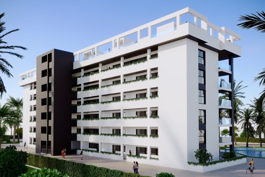 Gelegen nabij het pittoreske strand van La Mata in Alicante, wordt momenteel een luxueus nieuwbouwproject uitgevoerd. Dit project bestaat uit 50 ruime appartementen, waarvan de meeste een adembenemend uitzicht op zee bieden, waardoor ze de perfecte plek zijn om tot rust te komen en te ontspannen.