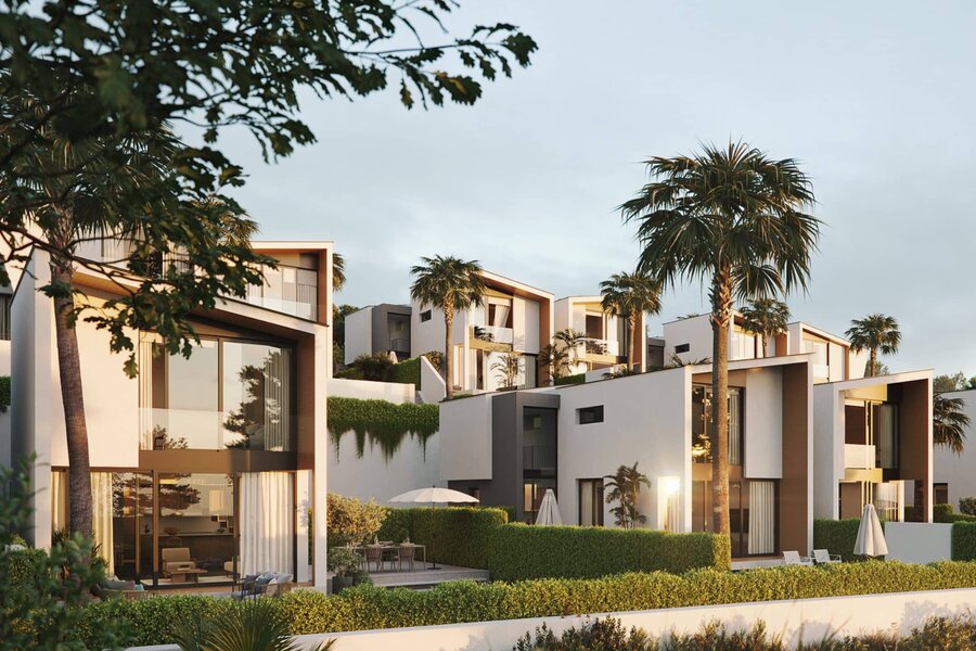 Elegant corner villa with private pool, generous garden and panoramic views, located in one of the most serene sectors of the gated community. Distributed over three levels, it offers a perfect blend of indoor and outdoor living, with large covered and uncovered terraces, a rooftop solarium and a south-facing pool that invites relaxation. With a built area of over 430 m² and a garden of nearly 170 m², this property combines privacy, design and comfort. An ideal setting to enjoy the Mediterranean light, sea breeze and lifestyle.