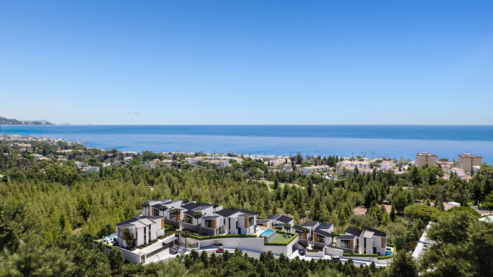 The architecture creates seamless continuity between indoors and outdoors, enhancing views over the pine forest, the golf course and the Mediterranean horizon. The expansive garden curves around the house, enhancing privacy while embracing sunlight from morning to evening. The development is located less than 500 m from the coast, within Reserva del Chaparral, offering over 300,000 m² of natural forest and direct access to the prestigious Chaparral Golf Club. Contemporary landscaping merges geometry with nature, resulting in a visual dialogue that feels both fresh and timeless.