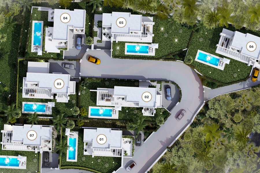 Contemporary design villa with a private pool, garage, and sea views that evoke a sense of freedom and serenity in every corner. This is villa no. 1, located in a prime position at the entrance of the complex, offering enhanced privacy, independence, and charm.