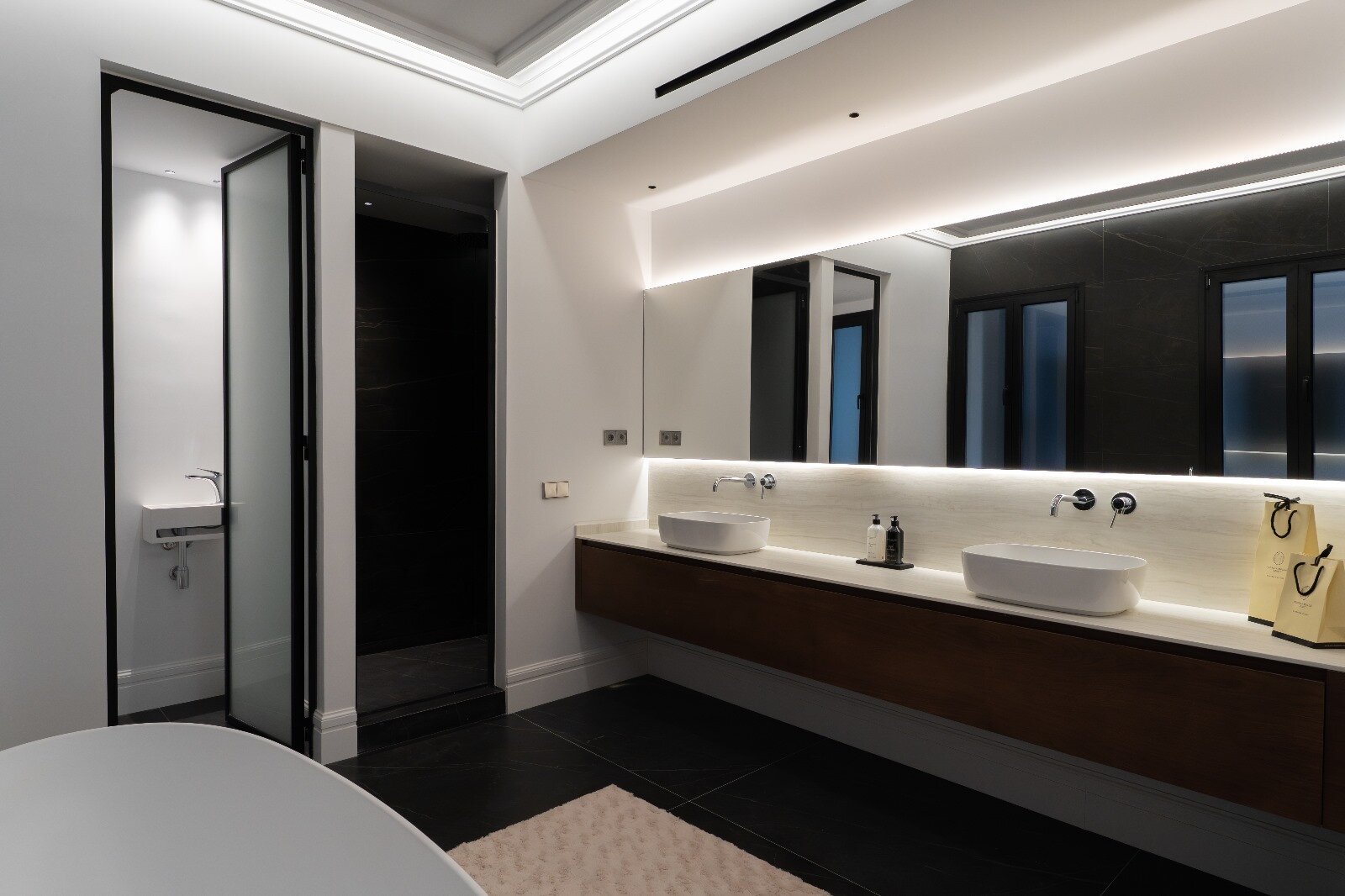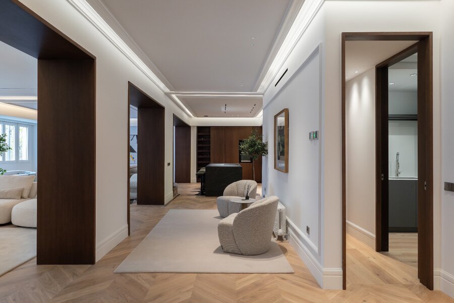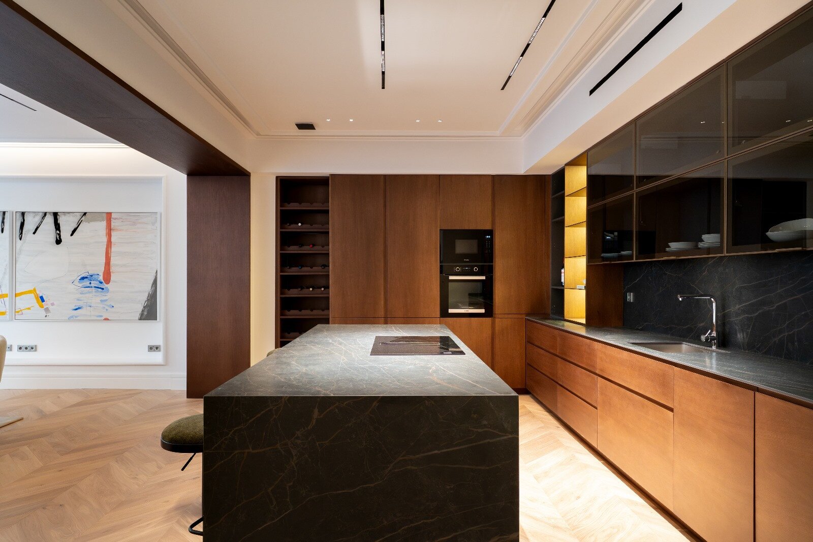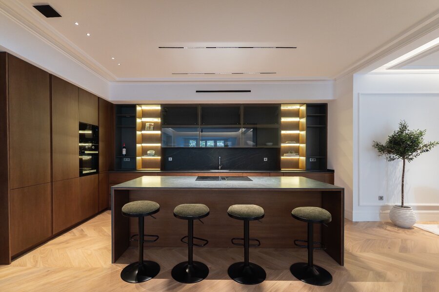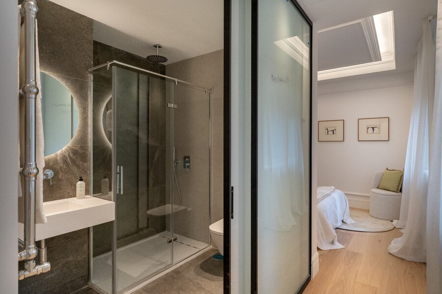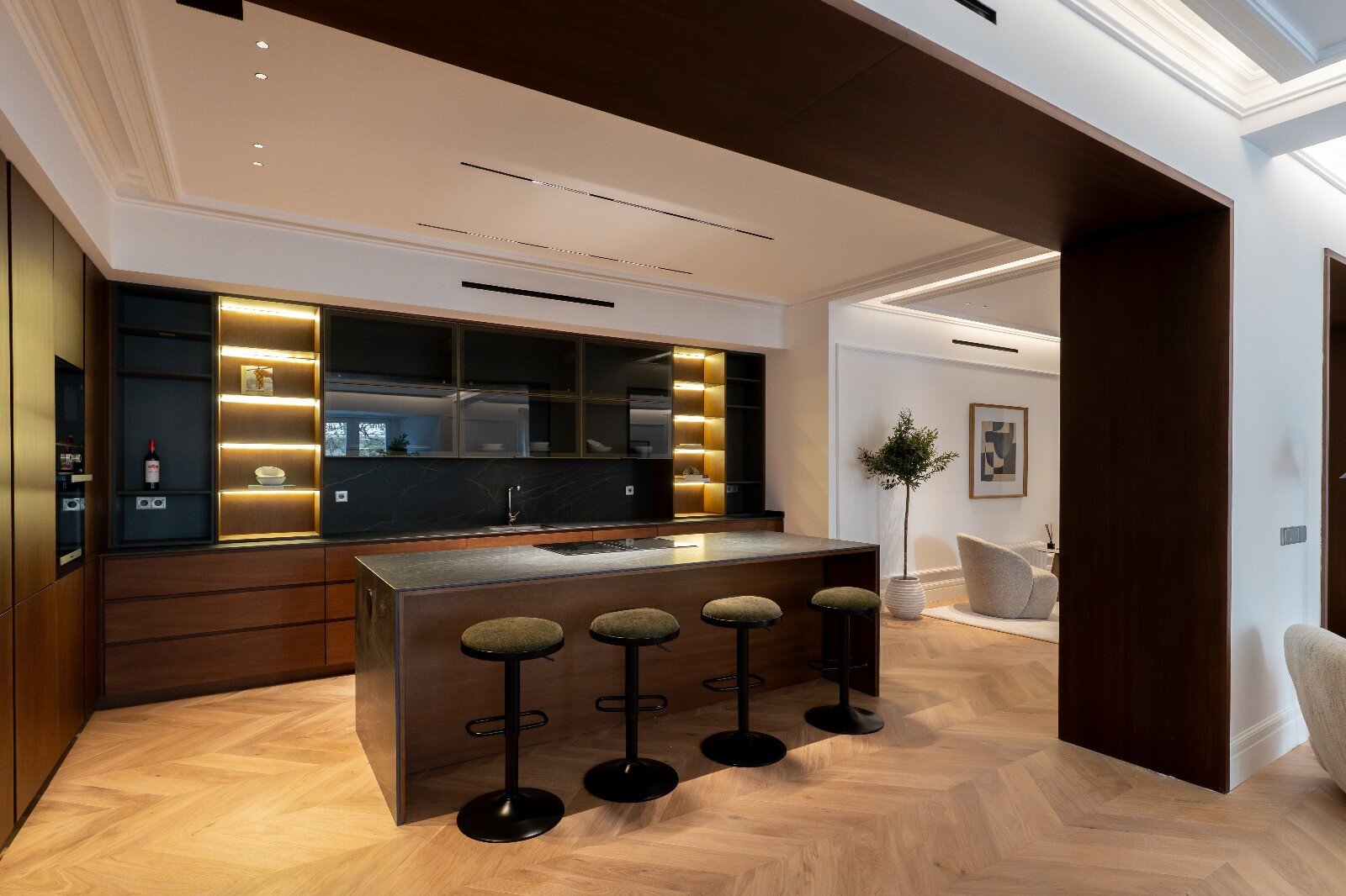 This residence is situated in the prestigious Castellana neighborhood, one of the most exclusive and sought-after areas of Madrid. Renowned for its elegant historic buildings, embassies, and headquarters of important companies, this area is home to several diplomatic missions, including those of the United States and Italy.