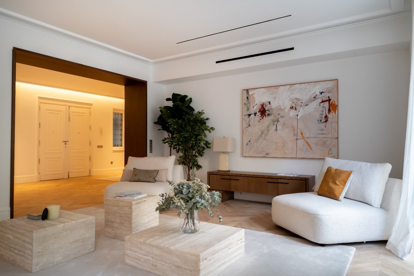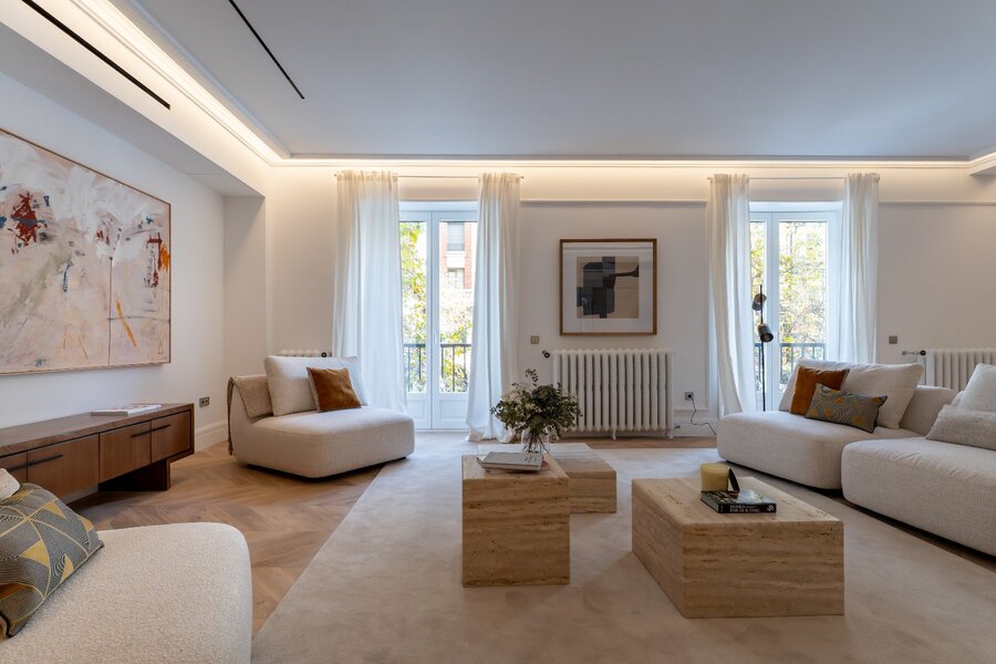 Castellana is part of the exclusive Salamanca district, recognized as one of the most prestigious in the capital. This neighborhood offers a unique blend of residential charm and proximity to Madrid's main commercial areas, including the upscale streets of Serrano and Velázquez, while also providing a vibrant social and cultural scene. Living in Castellana is synonymous with elegance, tranquility, and access to the very best that Madrid has to offer.