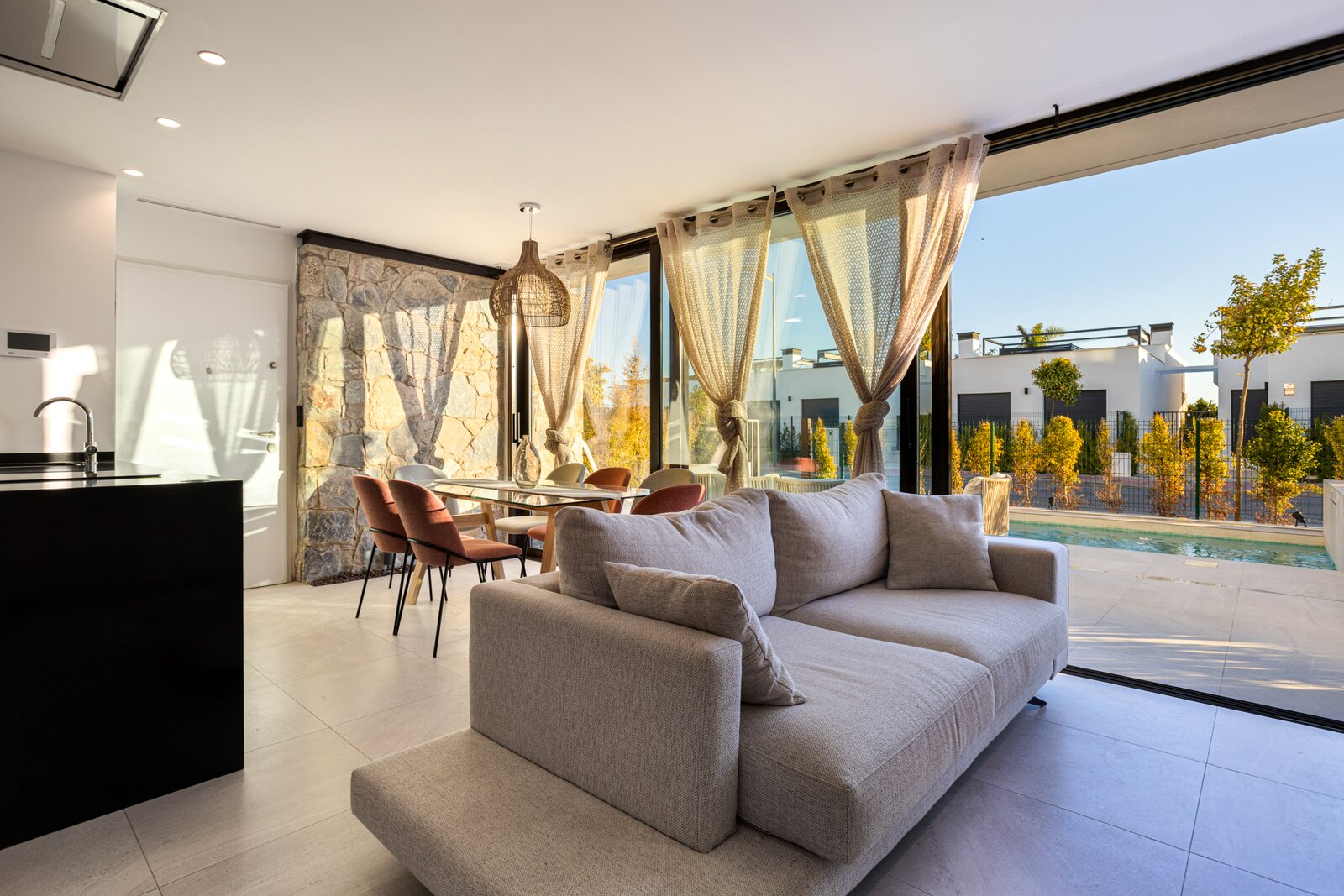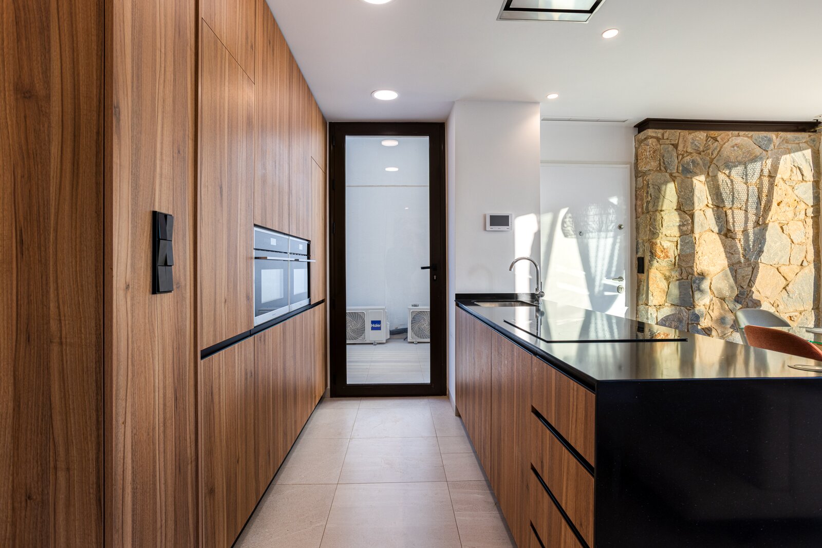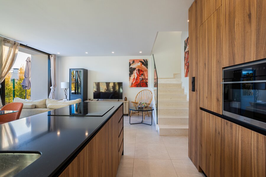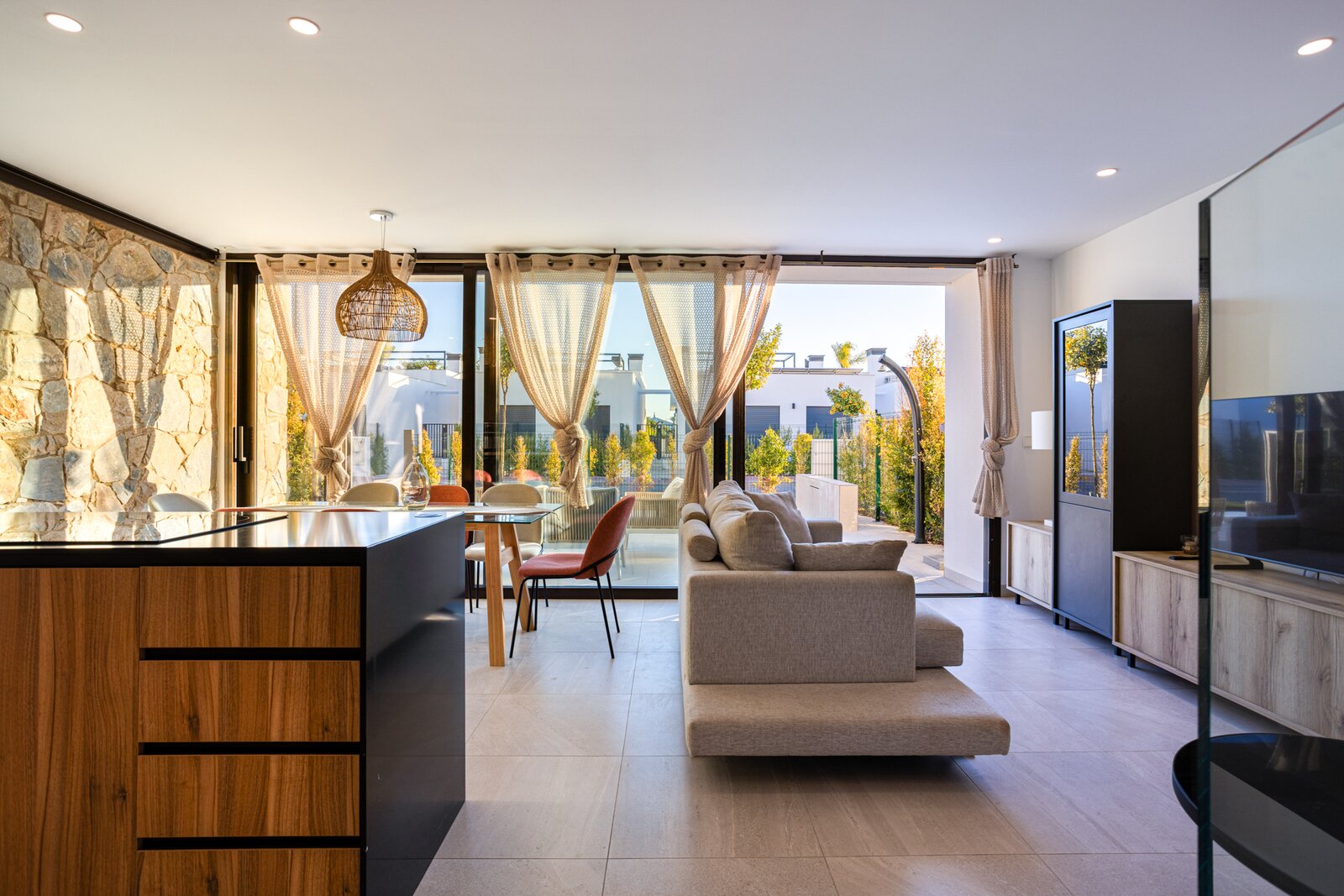 De villa beschikt over 4 ruime slaapkamers, 3 stijlvolle badkamers, een lichte leefruimte met panoramische ramen en directe toegang tot de prachtig aangelegde tuin met privézwembad. De open keuken is ontworpen voor comfort en gezelligheid, met een vloeiende verbinding naar de woon- en buitenruimtes — perfect voor het mediterrane buitenleven.
