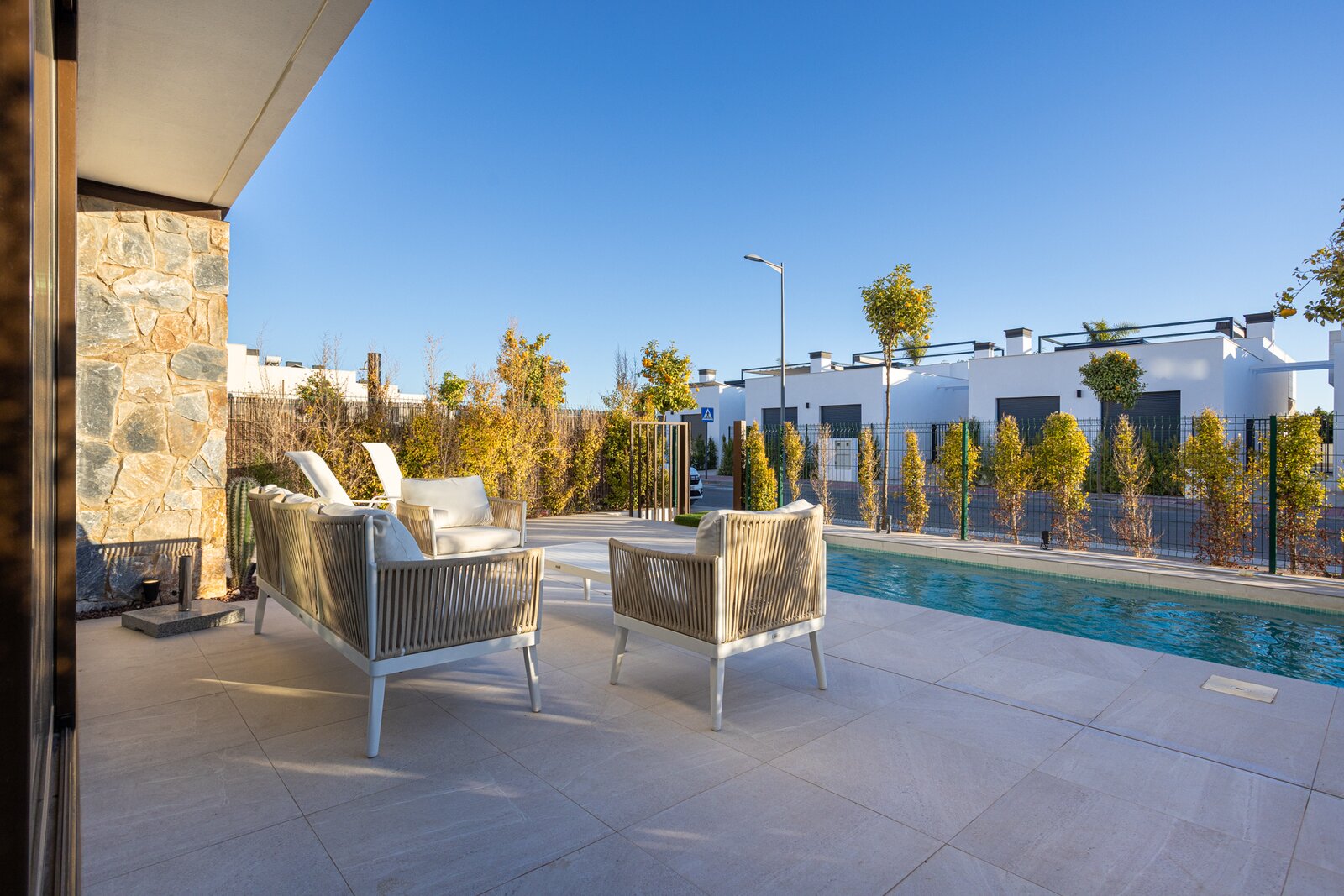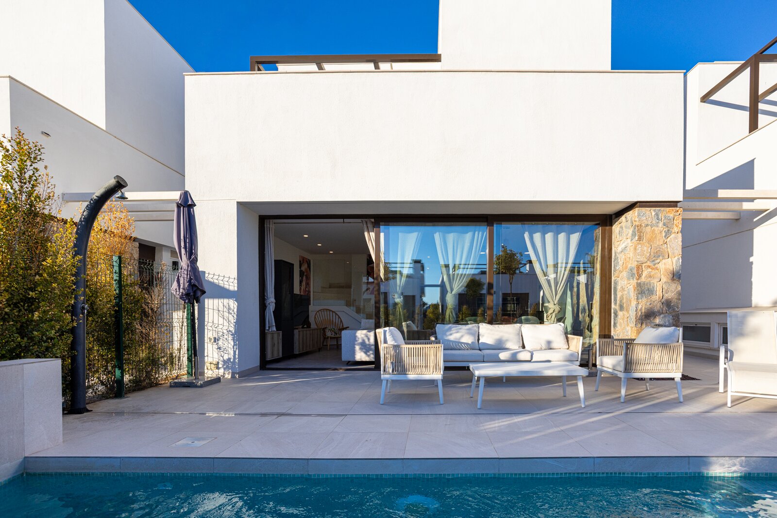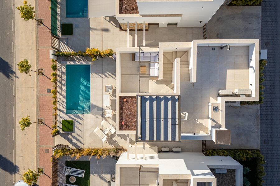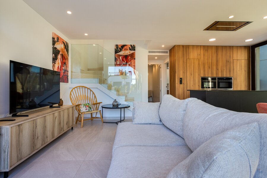 De villa beschikt over 4 ruime slaapkamers, 3 stijlvolle badkamers, een lichte leefruimte met panoramische ramen en directe toegang tot de prachtig aangelegde tuin met privézwembad. De open keuken is ontworpen voor comfort en gezelligheid, met een vloeiende verbinding naar de woon- en buitenruimtes — perfect voor het mediterrane buitenleven.