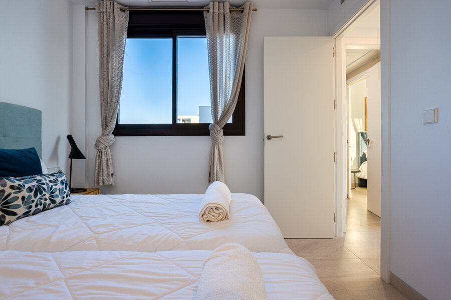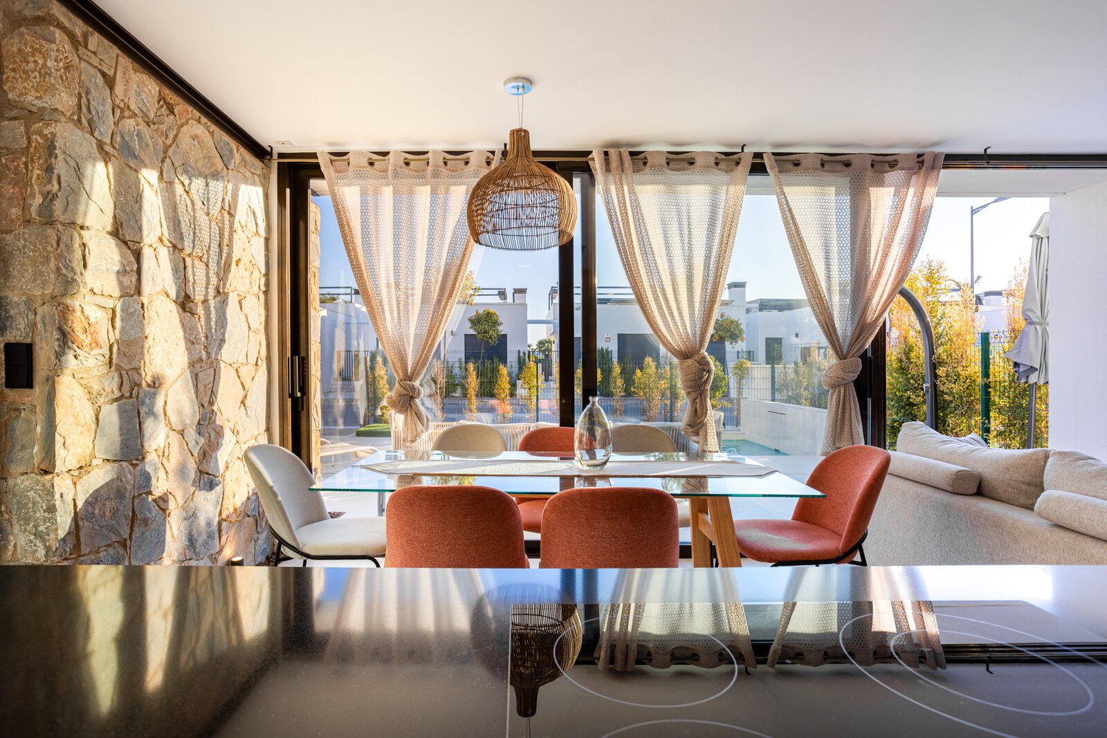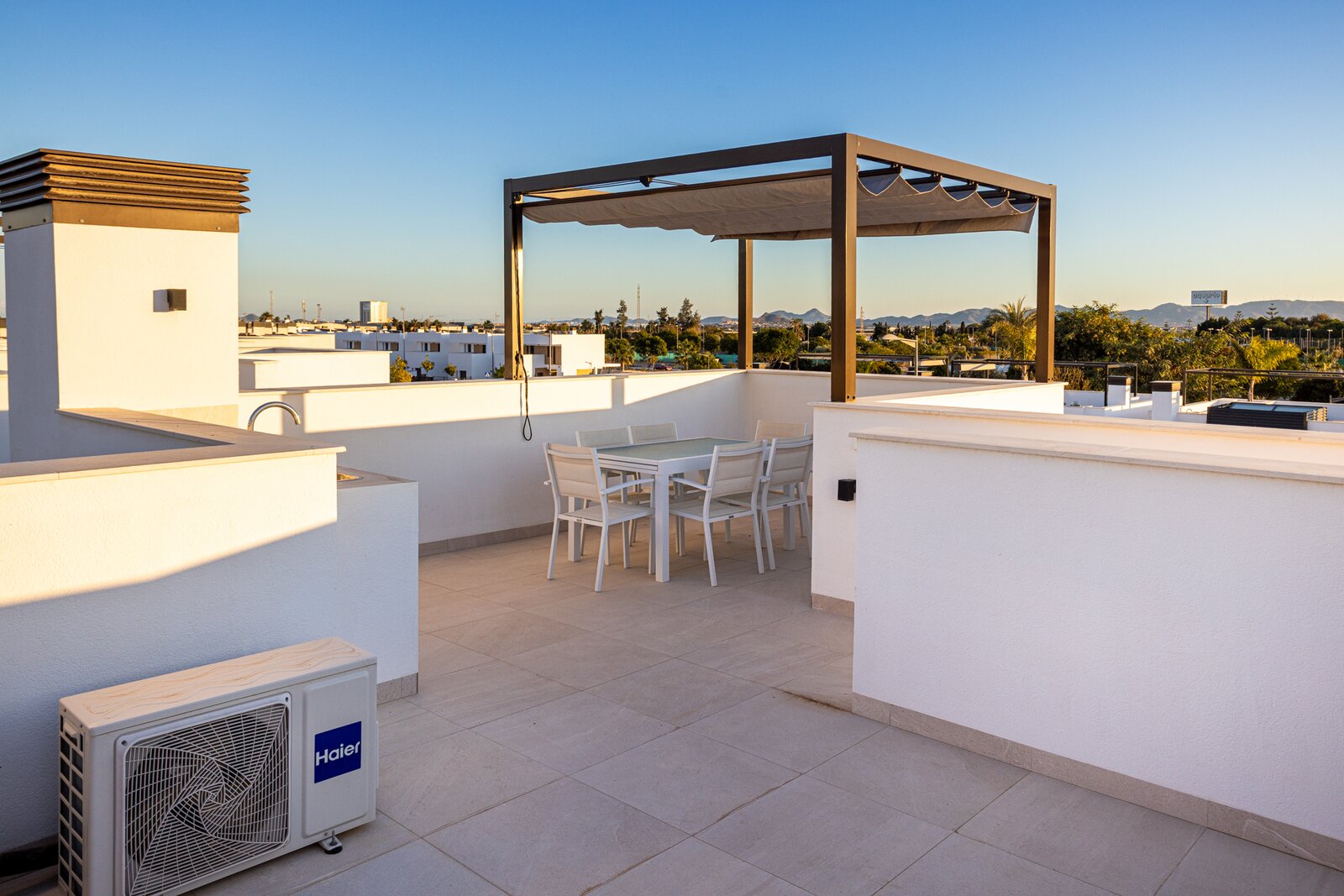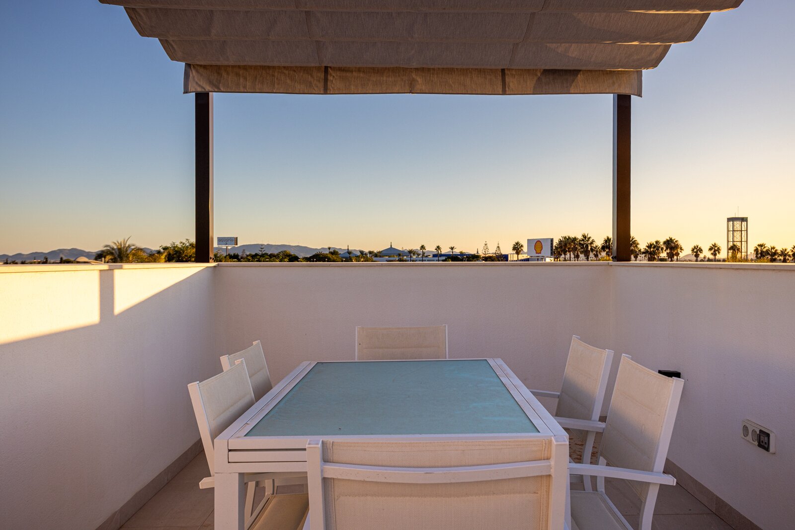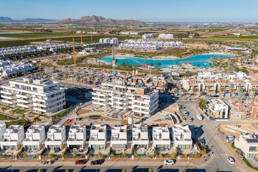 De ligging is subliem: op wandelafstand van het schitterende kristalmeer en alle faciliteiten van het resort — restaurants, beach club, sportzones, groene parken en 24/7 beveiliging. Op slechts enkele minuten ligt de levendige kuststad Los Alcázares, een bestemming die de laatste jaren een ware metamorfose heeft doorgemaakt en uitgroeit tot een van de nieuwe hotspots van de regio. Hier vind je uitstekende restaurants, wandelboulevards, strandclubs en een internationale community in volle bloei.