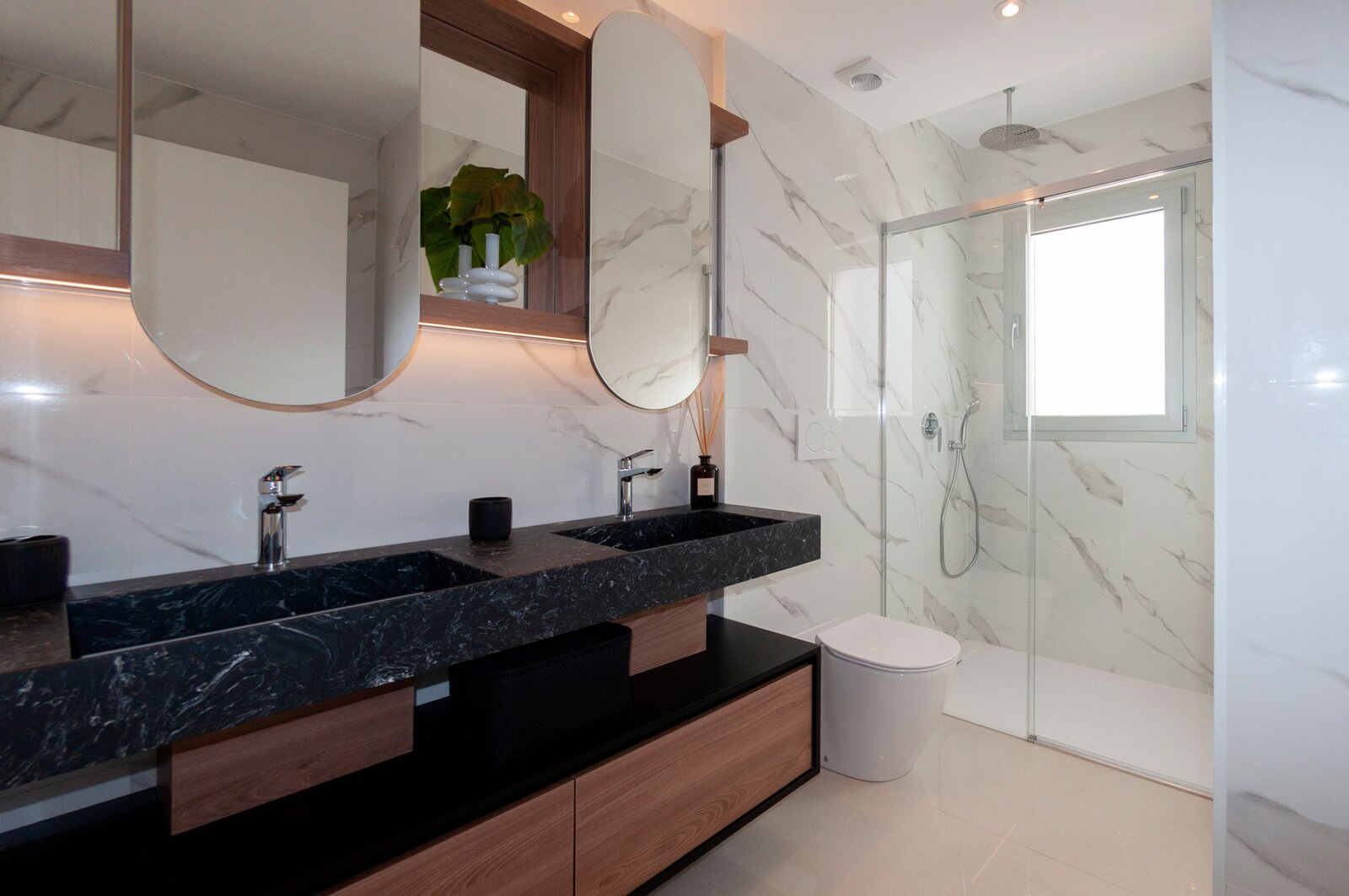 Located in the sunny Ciudad Quesada, this modern house consists of four en-suite-type bedrooms, and the main bedroom enjoys splendid views over a calm terrace. There is a spacious living room with an open kitchen, dining room, and ½ bathroom on the ground floor. The kitchen has all the necessary modern goods.