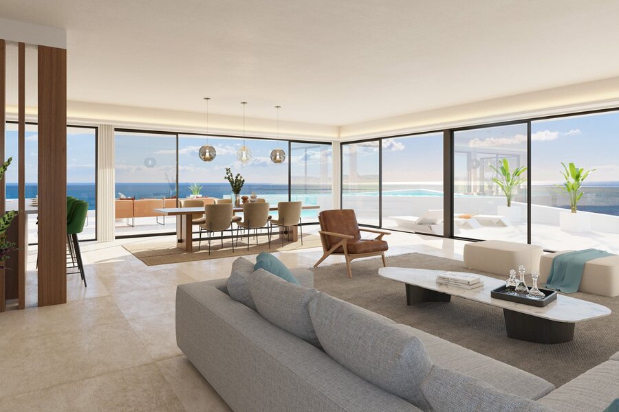 This residential complex of 157 homes divided into four blocks has sea views, two blocks facing south and the other two facing east. They are well organised in terraces so as not to interfere with the views of any other. The properties are strategically located between Málaga and Marbella, very close to the motorway from which the airport can be reached in about 10 minutes. They offer spectacular gardens in the communal areas that will connect the various phases of housing.