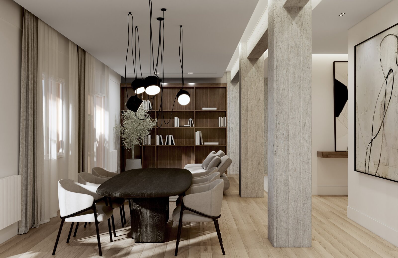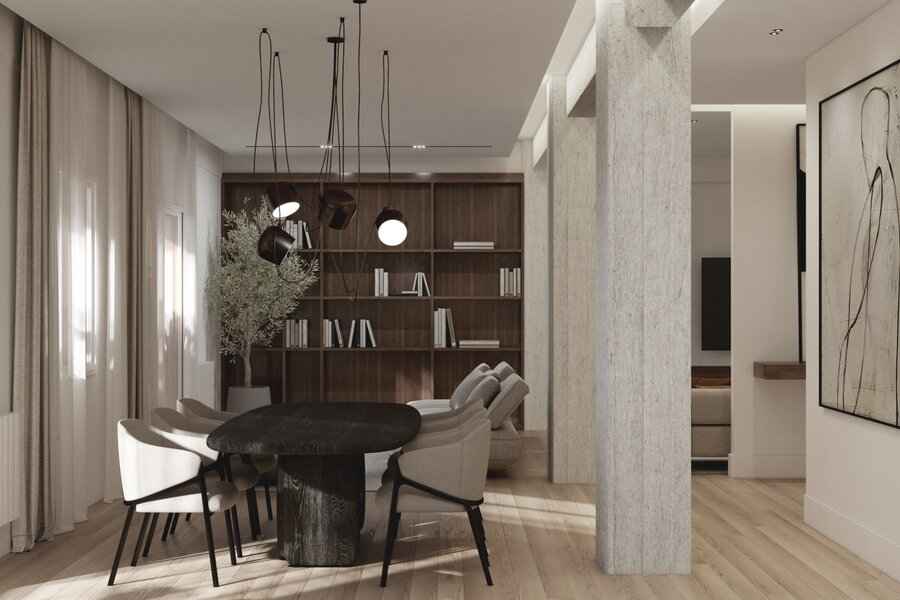 Stunning 243 m² apartment, fully renovated to the highest standards, is located on the second floor of an elegant 1950s building in the heart of Madrid. Its orientation and prime location allow abundant natural light to fill every room, highlighting the perfect blend of modern design with the building’s classic essence, offering spacious areas and high-end finishes throughout.