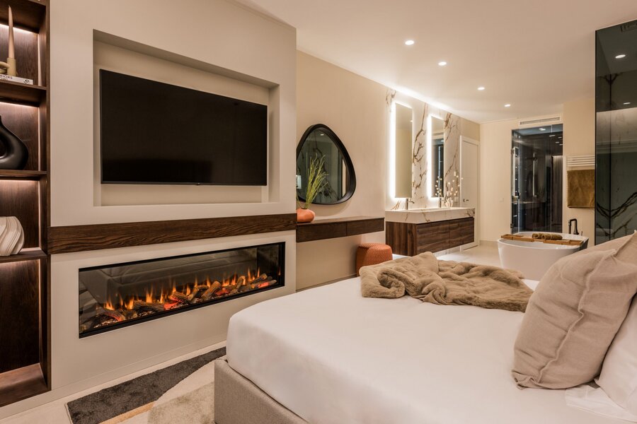 This elegant home features high-standard flooring and a designer wooden kitchen, equipped with state-of-the-art appliances. The bathrooms stand out for their refined use of marble, adding a touch of distinction. Bang & Olufsen sound system, bespoke wardrobes, and an electric fireplace complement the finishing touches, all of which have been made with meticulous attention to detail. This home has been conceived for those seeking a luxurious and sophisticated lifestyle, where every element has been carefully selected to enhance the ambiance of exclusivity and comfort.