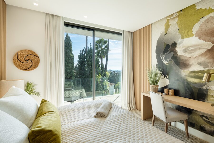 This extraordinary villa offers breathtaking panoramic views that, on clear days, stretch as far as the African coast and Gibraltar. Its spacious outdoor terraces are designed to guarantee moments of relaxation while enjoying the majestic scenery. Furthermore, it belongs to an exclusive gated community providing 24/7 security, complemented by the presence of a private guard, ensuring an environment of maximum tranquillity and privacy.