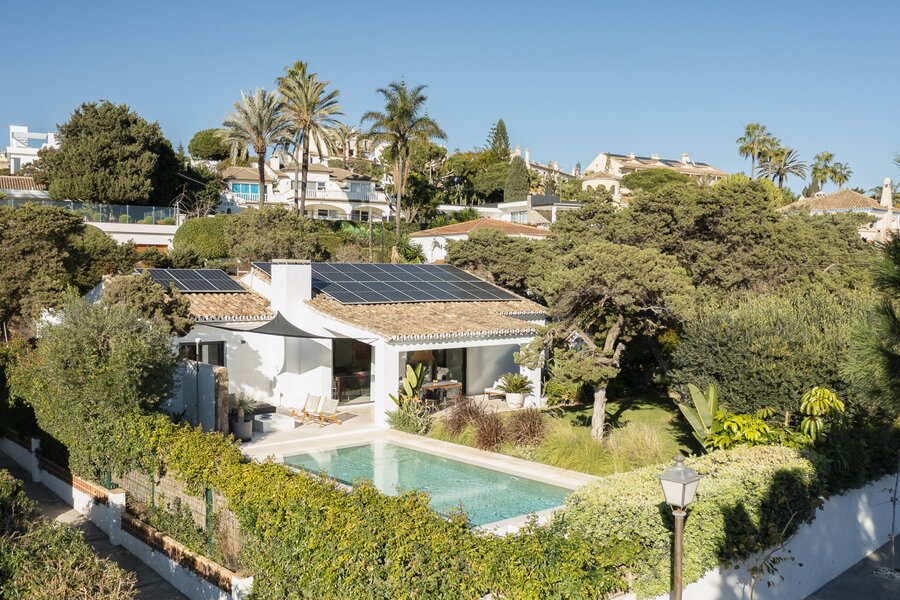 Stunning single-story villa located in the tranquil and sought-after area of Marbesa, East of Marbella. This beautifully designed property features three bedrooms plus an office space, making it ideal for both relaxation and productivity. The villa underwent a complete refurbishment in 2010, meticulously carried out by an internationally highly respected architect. His vision successfully fused classic Spanish architecture with contemporary sophistication, resulting in a home that is both stylish and functional.