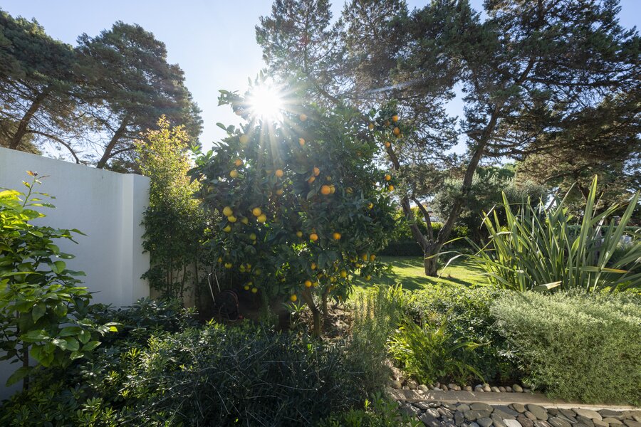 The villa is designed to take full advantage of the Mediterranean climate. Its carefully maintained, private garden and charming terrace provide the perfect setting to enjoy peaceful moments in good company. The south-facing orientation guarantees an abundance of natural light throughout the day and offers spectacular sunset views. To ensure effortless garden maintenance, the property is equipped with an automatic irrigation system. Additionally, the villa features solar panels, significantly reducing energy costs while promoting sustainability. A spacious carport with room for two vehicles completes the exterior, offering practicality and convenience.