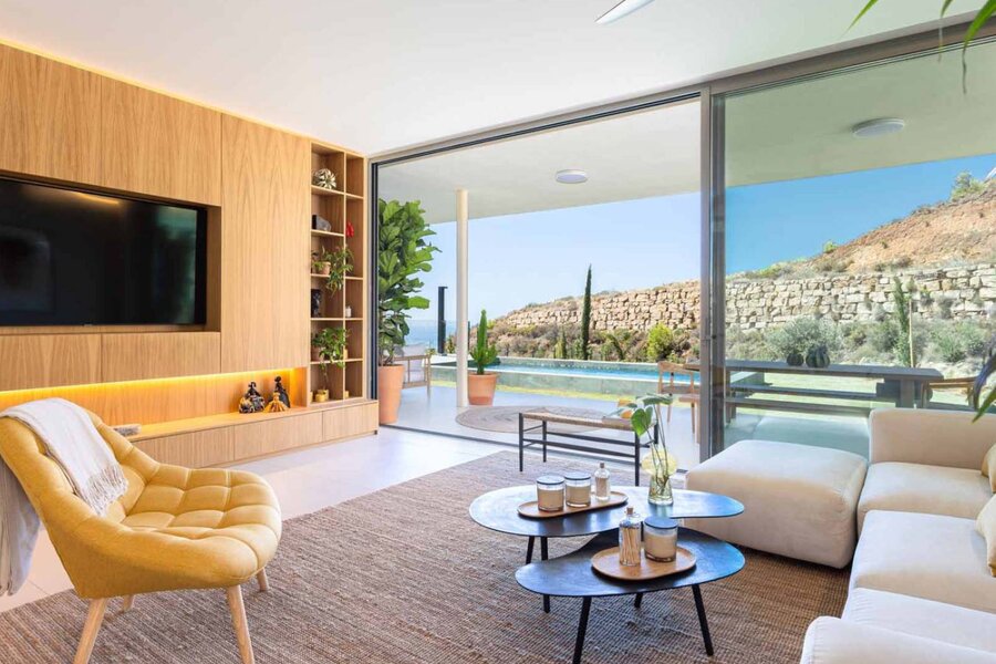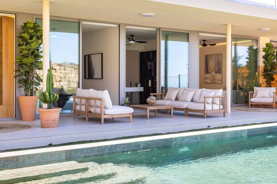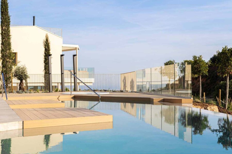 The architectural design of the building stands out for its contemporary elegance, blending seamlessly and respectfully with the native vegetation that surrounds it, creating a serene and vibrant setting. The outdoor areas of this home —with over 400 m² of terraces, gardens, and a 23-metre water feature that brings freshness and movement— are conceived as a natural extension of the living space. They offer intimate corners for rest, open spaces to gather with friends, and a constant connection with light, sky, and the privileged Mediterranean climate. A perfect setting to enjoy time slowly, in harmony with nature.