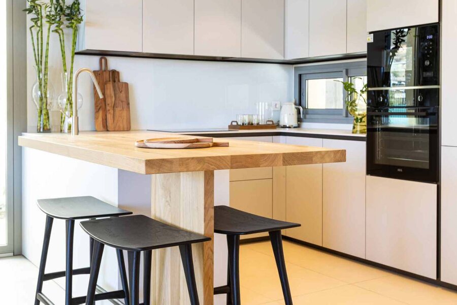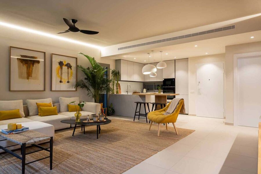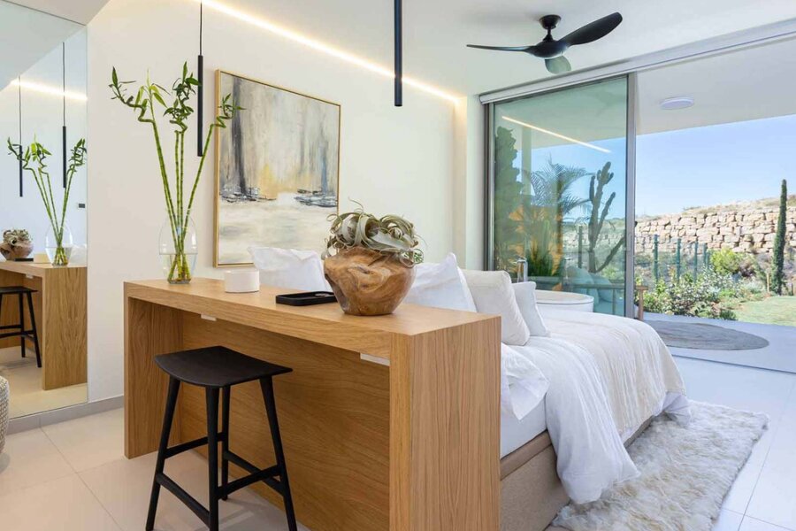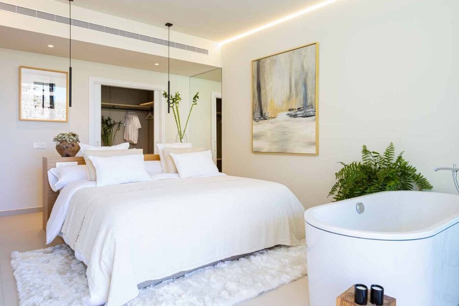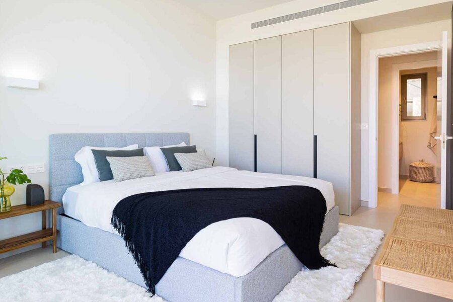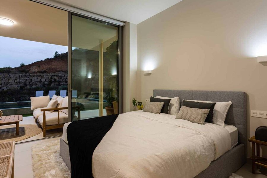 Natural light flows through every space, enhancing the warm palette and noble materials that create a sense of harmony and sophistication. The spacious open-plan living area and kitchen blend seamlessly into the private garden, inviting you to experience outdoor living as part of your home. The master bedroom, with an en-suite bathroom and walk-in wardrobe, offers an intimate and peaceful retreat. A home designed to enjoy the Mediterranean lifestyle in perfect balance with nature.
