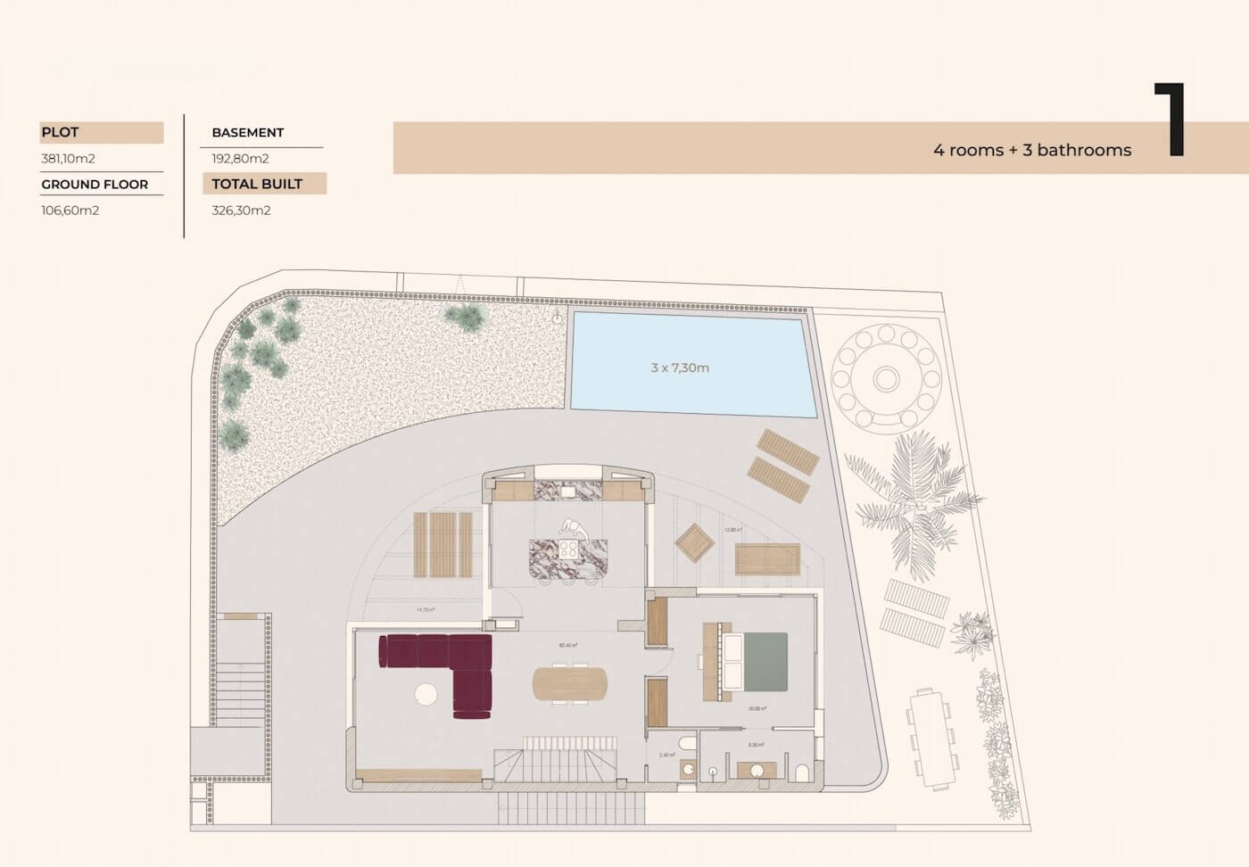 - Bedrooms open onto a private garden with lounge area, all enjoying natural light thanks to the thoughtful design