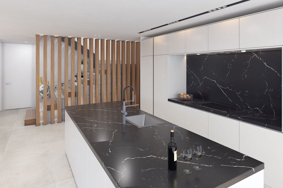 The villa features 4 elegant bedrooms and 3 bathrooms, all designed with comfort and aesthetics in mind. The living room, enhanced by large sliding glass doors, opens onto a spacious terrace that offers stunning views of the surrounding landscape. High-end finishes and modern amenities, such as a wine cellar, entertainment room, and private office, make this villa perfect for luxury living and entertaining.