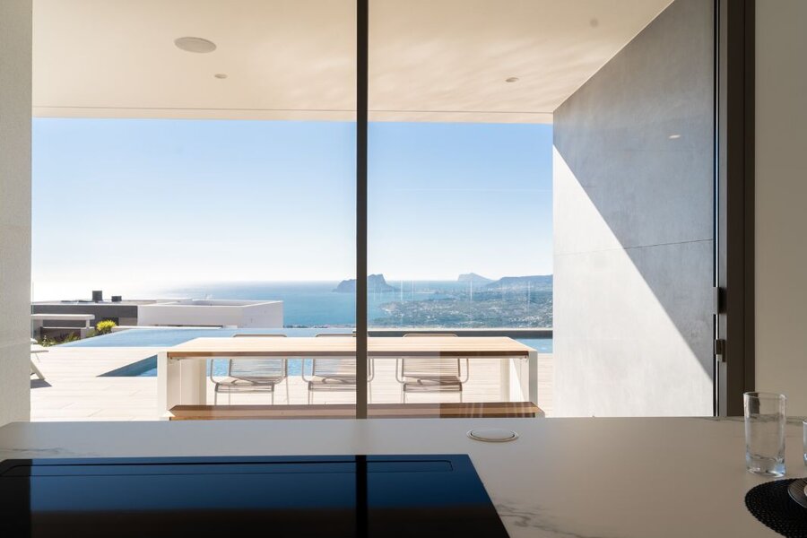 Vanuit de woning heb je een adembenemend uitzicht op de Middellandse Zee en op de skyline van de kustplaatsjes Javea, Moraira, Calpe, Benidorm, Altea,… een uniek uitzicht op de Costa Blanca Noord.
