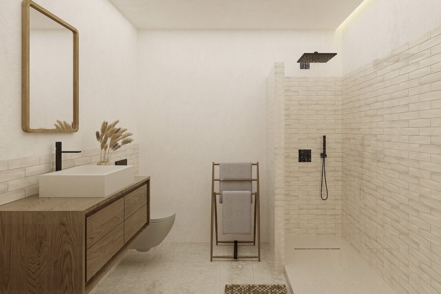 De woning is voorzien van moderne gemakken zoals vloerverwarming, airconditioning en hoogwaardige afwerkingen. Praktische details, zoals een technische ruimte voor het verwarmingssysteem en een aparte ruimte voor zwembadapparatuur, zijn discreet verwerkt om het wooncomfort te verhogen zonder in te boeten op esthetiek.