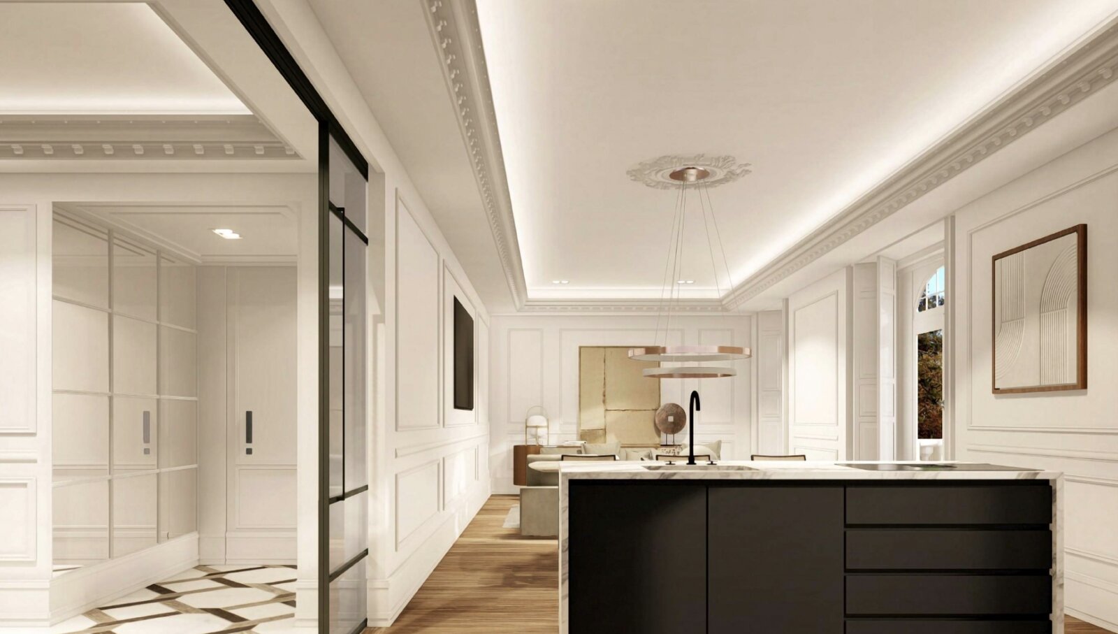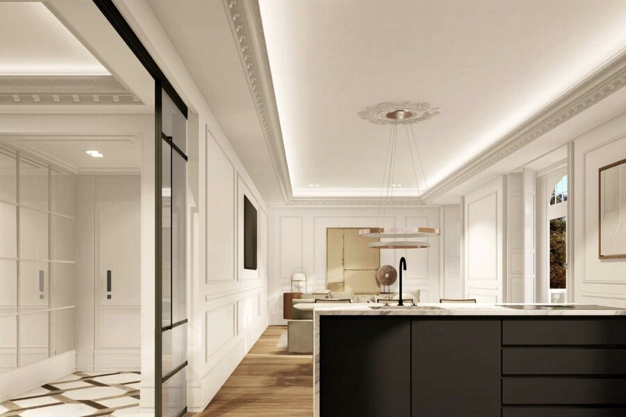 Christie’s International Real Estate Madrid offers this exclusive customizable residence, with a surface area of up to 193,75 square meters and versatile, functional designs. Situated in a classic 19th-century building, this property stands out for its high-quality finishes and modern luxury amenities, including a spa area, an interior garden, a heated pool, changing rooms, and a state-of-the-art gym. Additionally, the rooftop features landscaped areas, ideal for relaxing in the heart of Madrid.