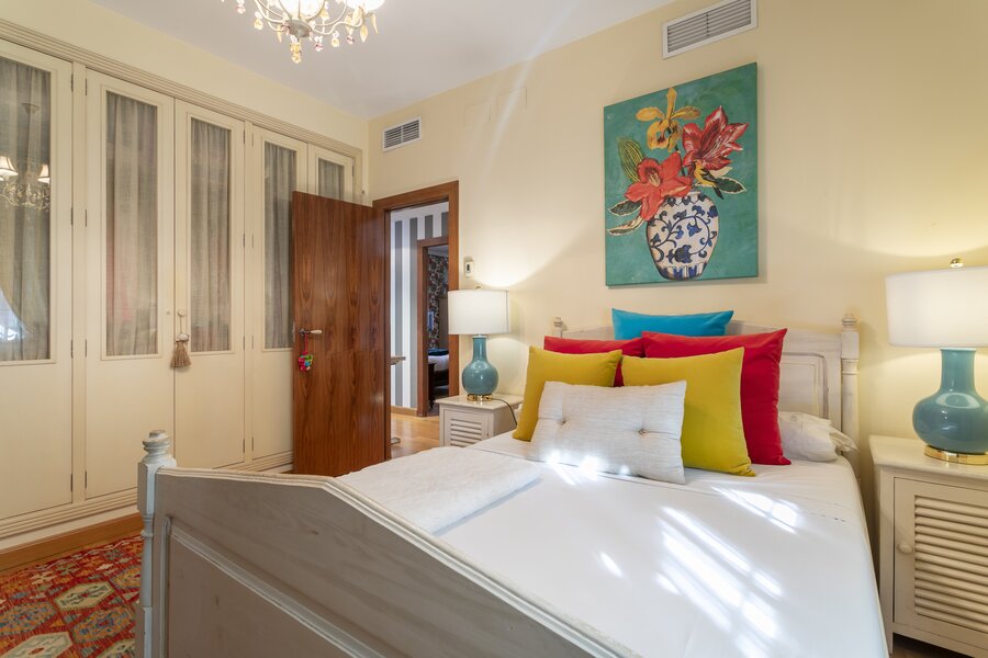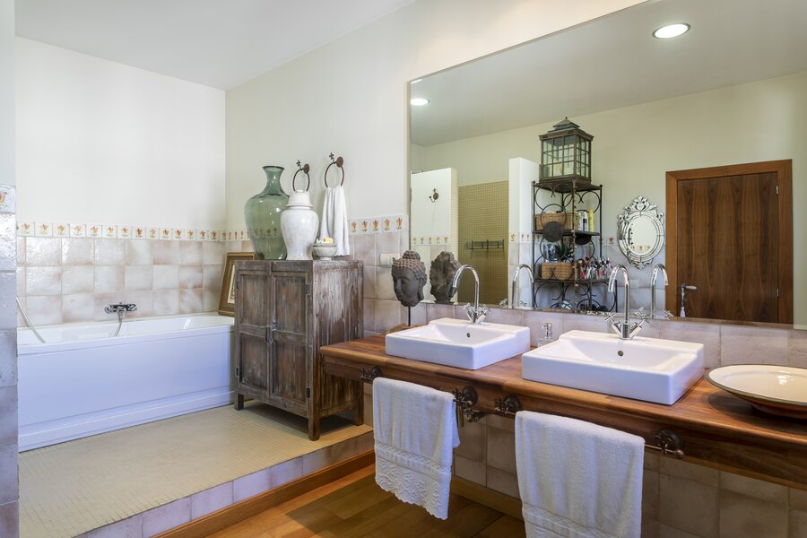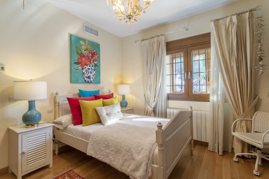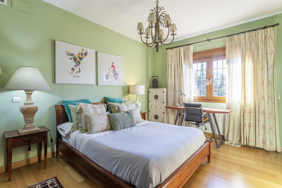 Au premier étage se trouvent deux chambres et une salle de bains et une chambre principale de type suite avec un dressing. Les trois pièces sont spacieuses et les prestations sont de grande qualité.