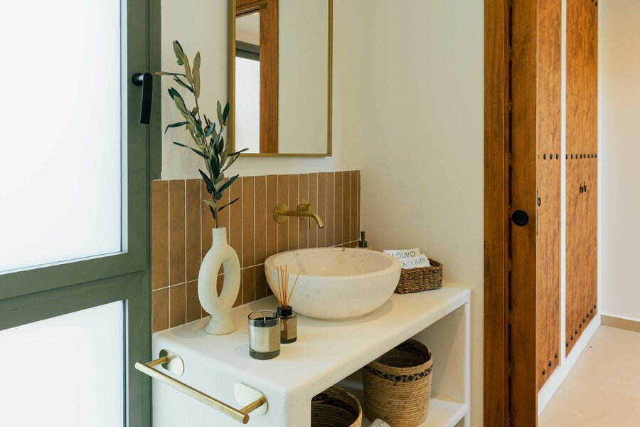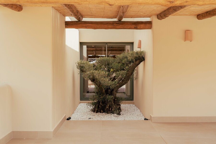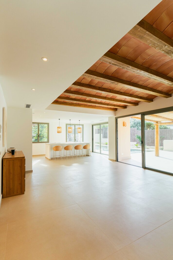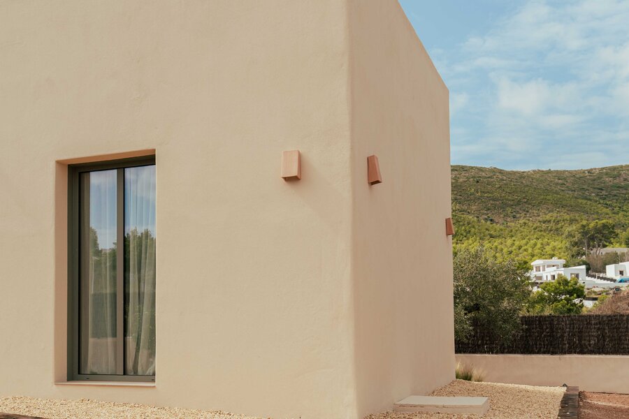 De woning is ontworpen in een verfijnde mediterrane stijl met subtiele Ibiza-invloeden waarbij natuurlijke materialen de warme en authentieke sfeer bepalen. Grote ramen met traditionele luiken laten overvloedig daglicht binnen, wat zorgt voor een rustig en uitnodigend wooncomfort.
