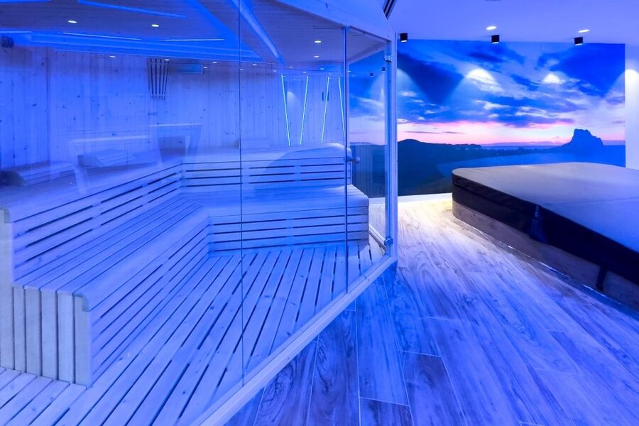 Spectaculaire villa de luxe en front de mer, à quelques pas de la plage de Puerto Blanco et à quelques minutes de marche de la vieille ville. Cette superbe villa est située dans l'un des quartiers les plus recherchés de Calpe. La propriété dispose d'un spa, avec sauna, jacuzzi, bain turc, etc. Elle dispose d'une buanderie, d'un barbecue, d'un jardin et de bien d'autres choses encore.