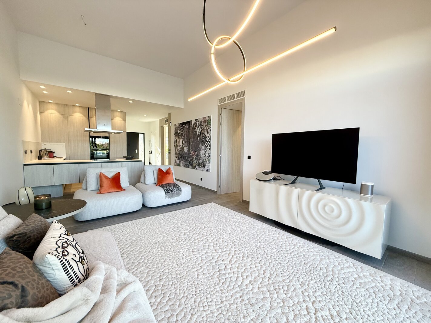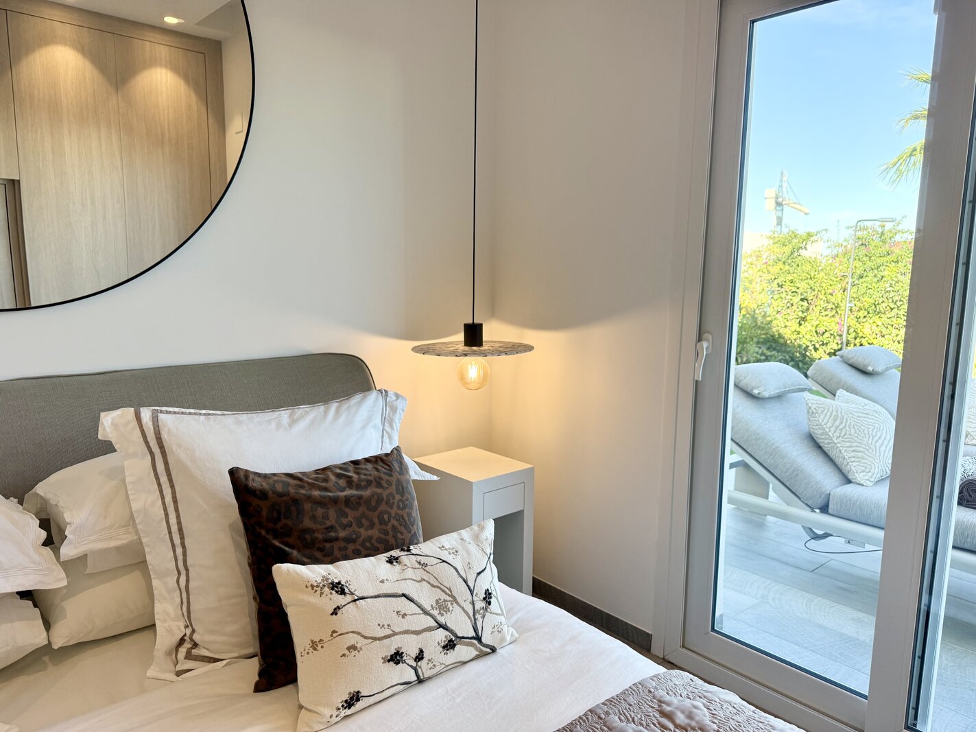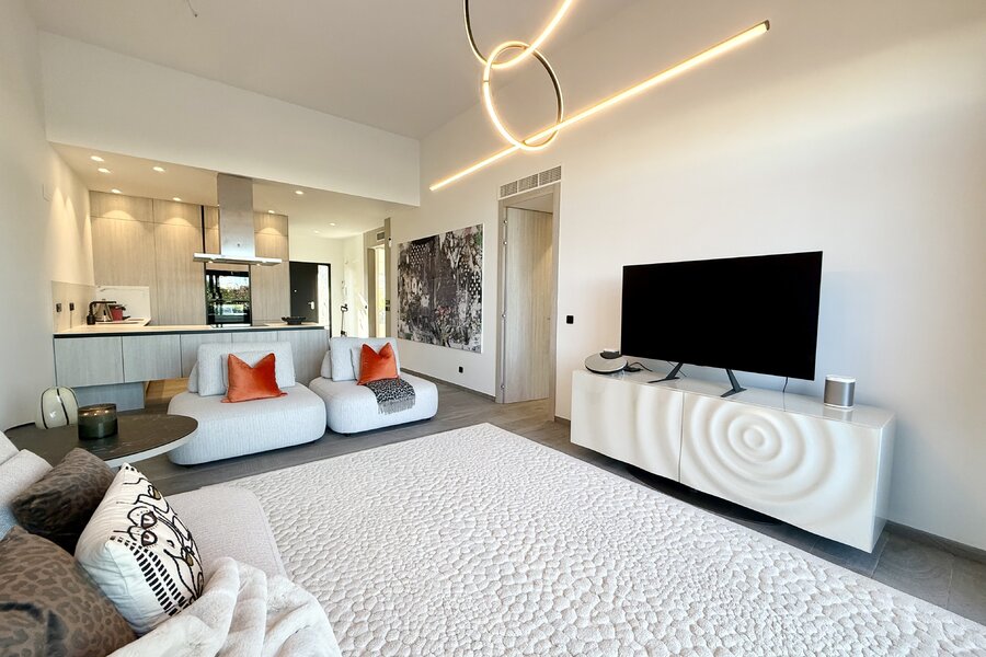 De woning is gemeubileerd in een moderne stijl, maar de meubels zijn niet inbegrepen in de prijs. Er is een aparte inventarislijst beschikbaar voor wie interesse heeft om het meubilair mee aan te kopen.