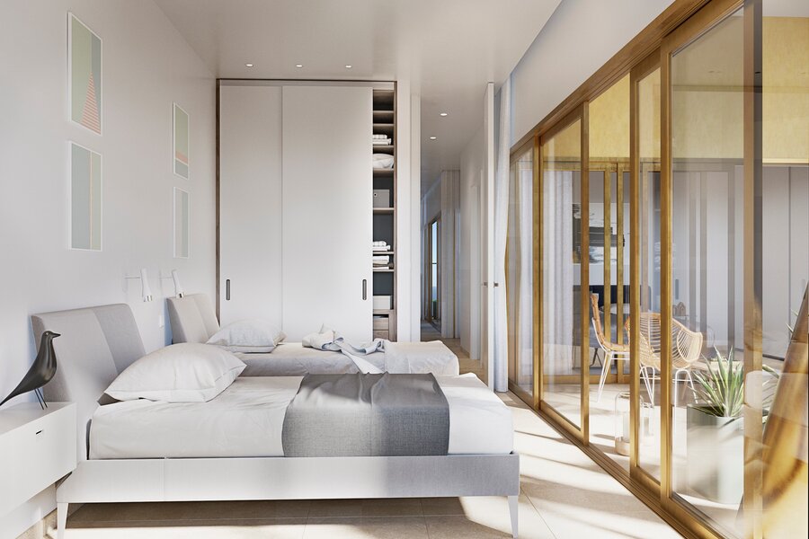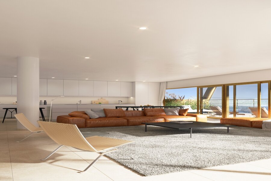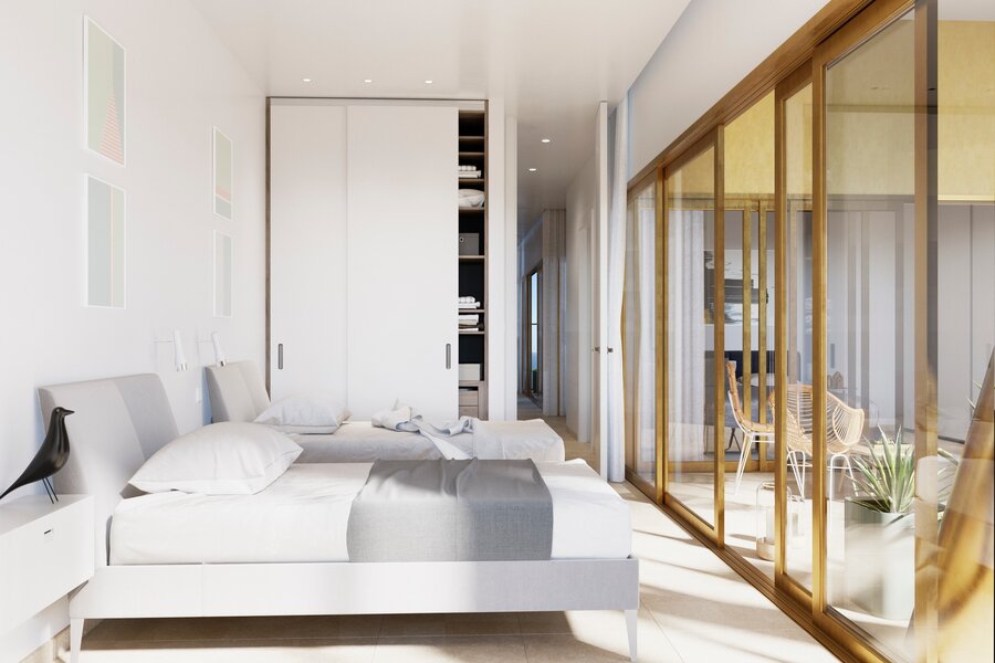 Les appartements du Residencial Resort sont protégés par une construction extérieure en aluminium laqué avec double vitrage et fenêtres à faible facteur solaire qui leur garantit une température agréable toute l’année. La température est régulée par un système de climatisation individuel avec une pompe à chaleur à économie d’énergie. Les chambres disposent d’armoires murales, avec des portes laquées blanches et doublées à l’intérieur. Les cuisines sont parfaitement équipées avec des meubles de grande marque en finition blanche, des plans de travail résistants, des éviers en acier inoxydable, des fours électriques, des micro-ondes, des lave-vaisselle, des hottes aspirantes, des plaques de cuisson en vitrocéramique et des réfrigérateurs. Rien ne manque non plus dans la salle de bains qui est équipée d’une baignoire balnéo. Tous les murs sont peints en blanc, avec une installation électrique moderne, et le sol est recouvert de carreaux en grès cérame.