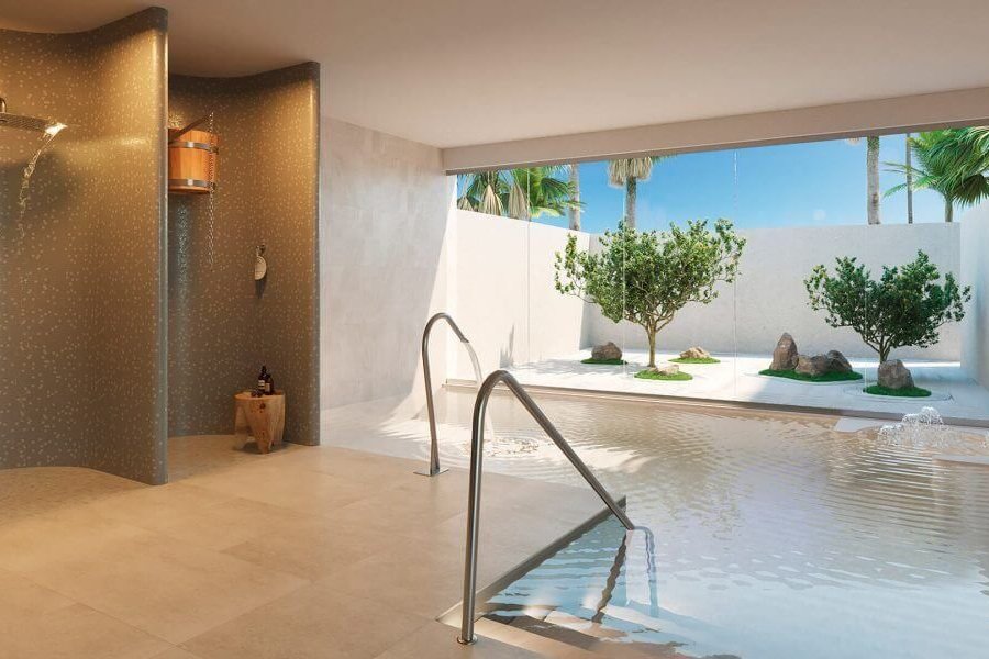 Neutrale omgevingen, grote ruimtes, nobele en moderne materialen… alles binnenin is ontworpen met de grootst mogelijke zorgvuldigheid, om elk ‘huis’ om te zetten in een ‘thuis’. Door de grote glazen ramen creëert men een constante verwijzing naar de lichte Middellandse Zee, het strand, de horizon en de verre uitzichten.