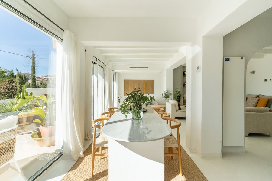 Oorspronkelijk gebouwd in de jaren '70 in de kenmerkende Spaanse stijl, heeft de villa in 2019 een volledige renovatie ondergaan, waarbij alle leidingen, bedrading, kozijnen en ramen zijn vervangen volgens hedendaagse normen. Zowel het interieur als het exterieur zijn smaakvol vernieuwd, en villa is ingericht door binnenhuisarchitecte Jessica Bataille.