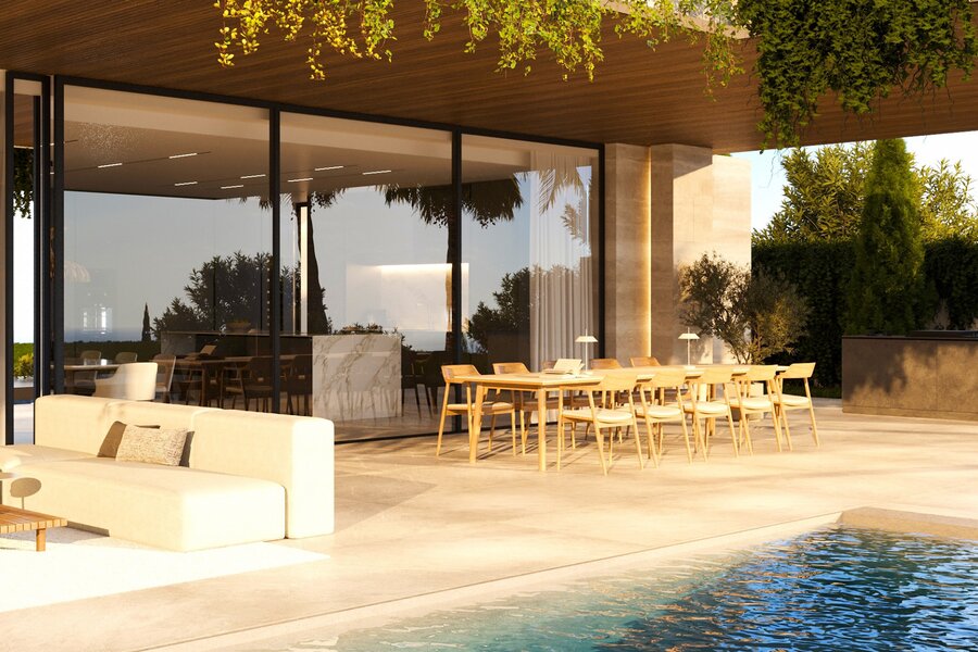 De terrassen van deze woning zijn ontworpen om de buitenervaring te maximaliseren, zodat je op elk moment van de dag kunt genieten van het uitzicht op zee en de bergen. Met ruime buitenruimtes biedt dit pand een privézwembad en ontspanningsruimtes die perfect zijn om het mediterrane klimaat te ervaren, buiten te eten of gewoon te ontspannen in een natuurlijke omgeving van absolute exclusiviteit.