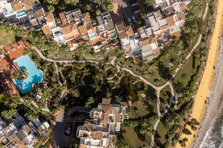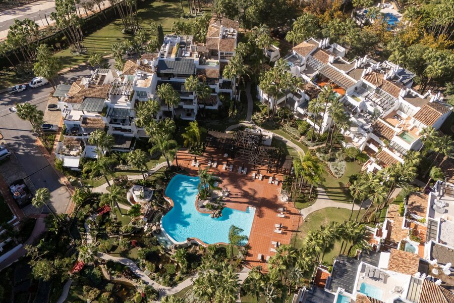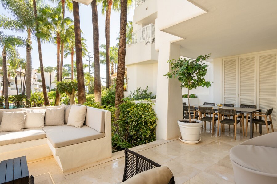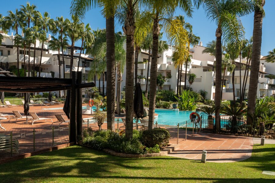 Het appartement beschikt over een eigen tuinterras met directe toegang tot de gemeenschap prachtig onderhouden tropische tuinen en een zwembad gebied, een idyllische omgeving voor ontspannen of vermakelijk buiten. De Puente Romano gemeenschap biedt 24-uurs beveiliging, weelderige aangelegde gebieden en gemakkelijke toegang tot alle vijf-sterren voorzieningen van het resort, waaronder Michelin-sterrenrestaurants, een luxe spa, fitnessruimte en een strandclub.