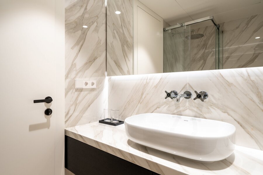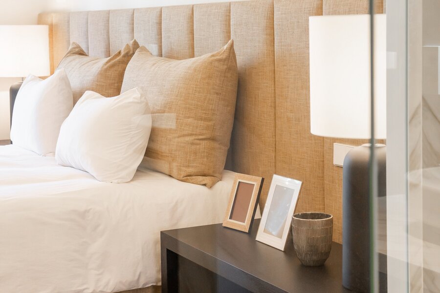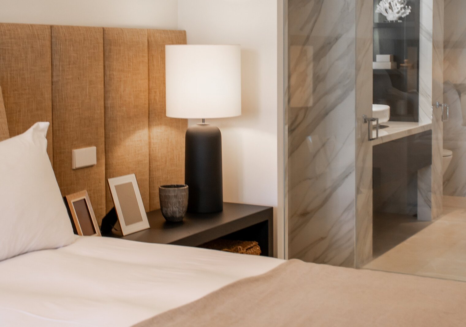 Ontworpen met comfort en stijl in het achterhoofd, de interieurs showcase een elegante open-plan lay-out die naadloos verbindt de woon-, eet- en keukenruimten. Grote glazen deuren overspoelen de ruimte met natuurlijk licht en openen op het terras, waardoor de woonkamer buiten wordt uitgebreid. De master suite beschikt over een luxe en-suite badkamer en directe toegang tot de tuin, terwijl de twee extra slaapkamers ook stijlvolle en-suite badkamers bevatten. Neutrale tinten, natuurlijke texturen en op maat gemaakte afwerkingen creëren een rustige, uitnodigende sfeer ideaal voor het moderne mediterrane leven.