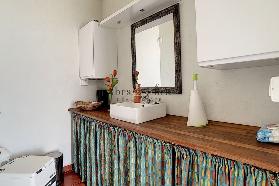 Het uitgestrekte zonneterras biedt een prachtig door zonne-energie verwarmd zwembad uitgerust met een zoutwatersysteem en een aangename buitendouche. Warm water wordt gegenereerd via een zonneboilersysteem. De villa biedt veel schaduwrijke plekken met verschillende lounge- en zithoeken, zodat je optimaal kunt genieten van deze prachtige locatie met spectaculair uitzicht. De dagelijkse zonsondergangen zijn hier werkelijk adembenemend.
