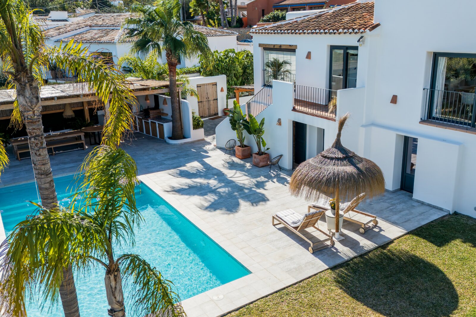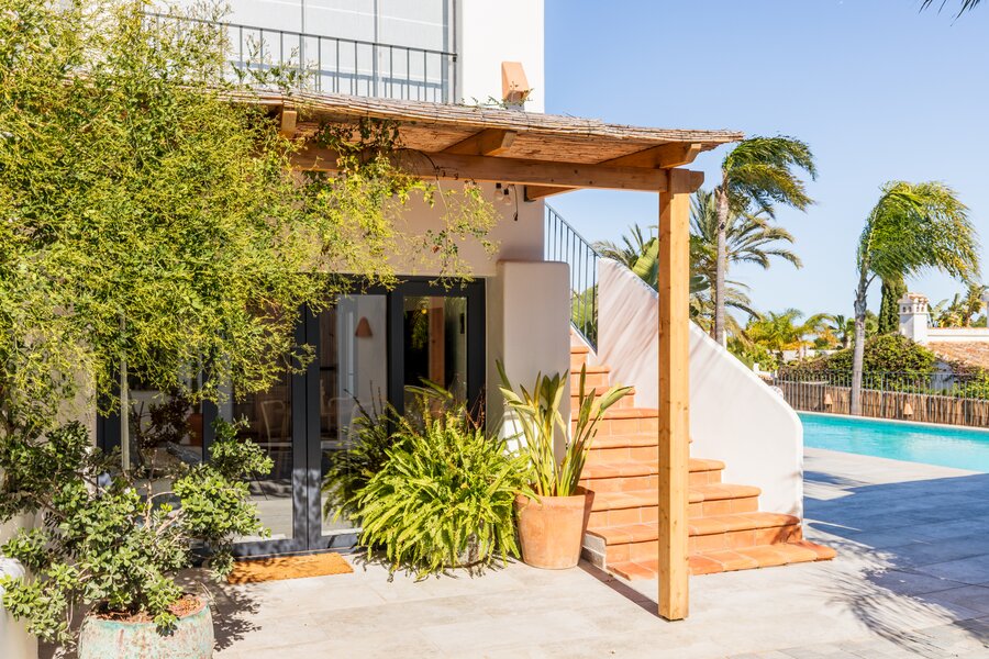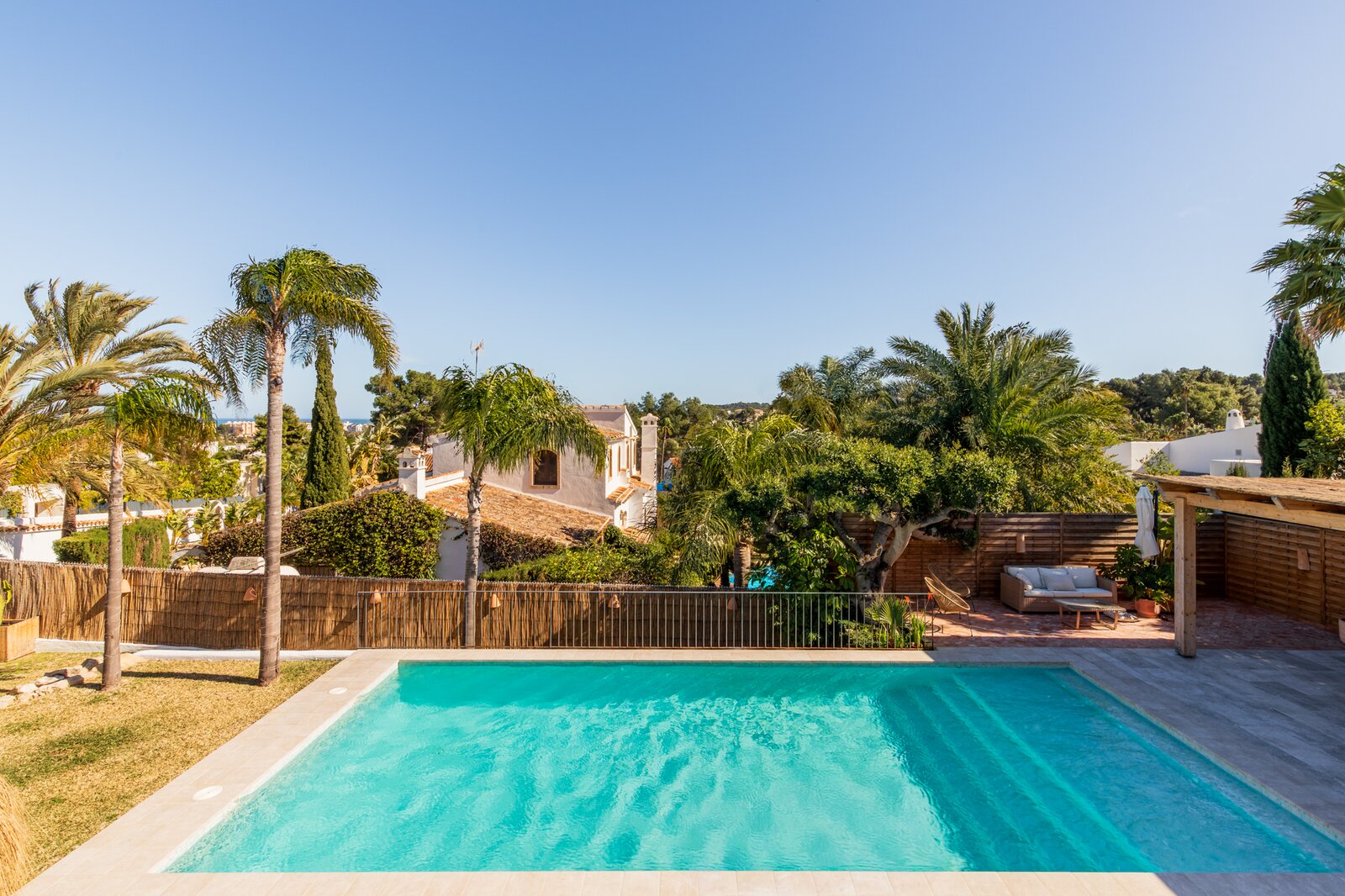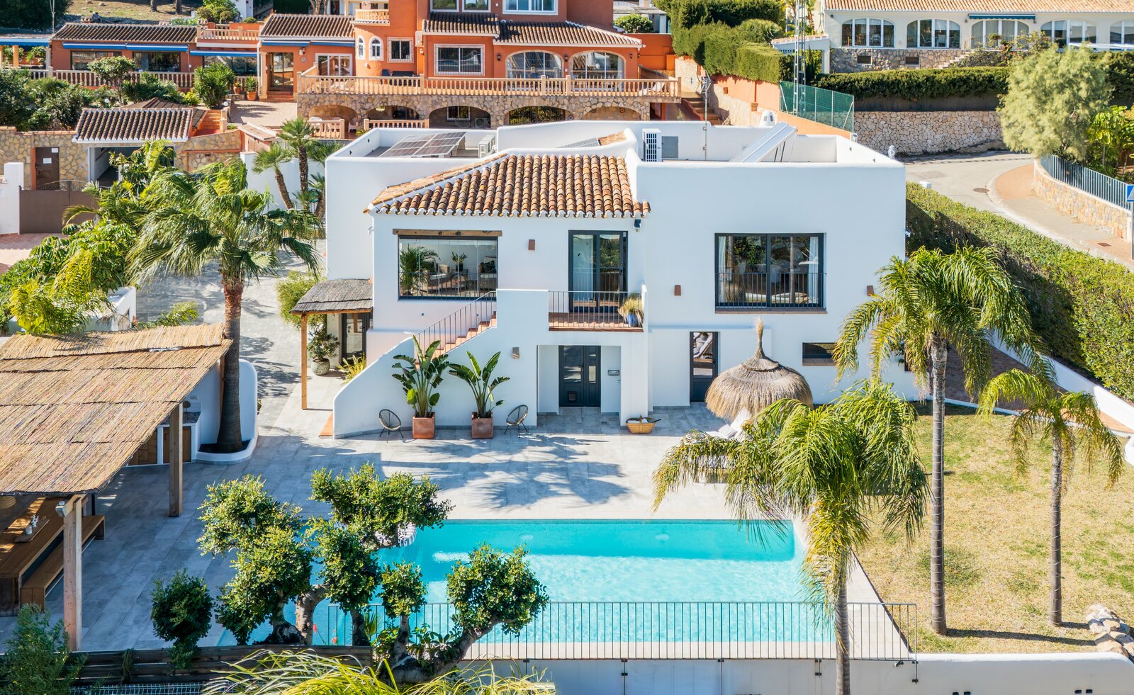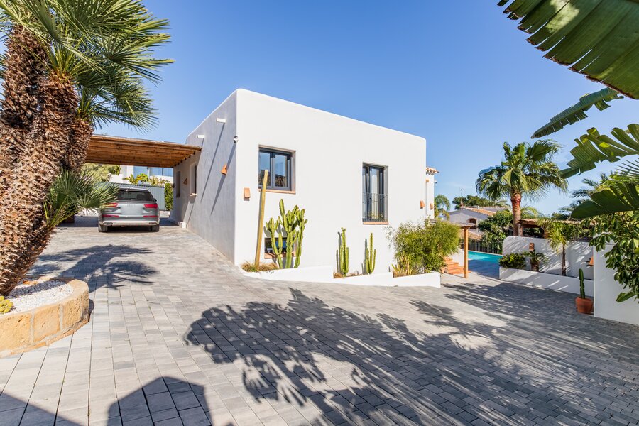 In de rustige en gegeerde wijk Adsubia in Jávea bevindt zich deze prachtig vrijstaande villa in Ibiza-stijl. Een oase van rust en privacy, terwijl alle faciliteiten én de zee zich op slechts enkele minuten bevinden. Vanaf de bovenverdieping geniet u bovendien van een subtiel zeezicht.
