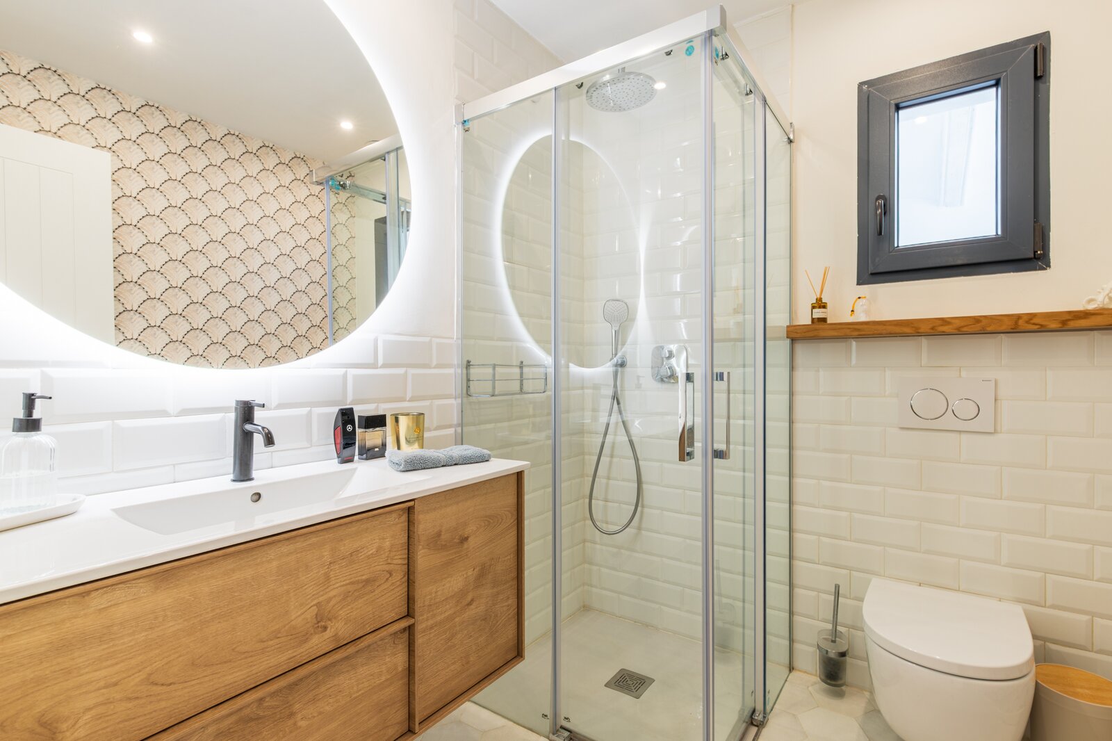 Vloerverwarming en airconditioning zijn per ruimte afzonderlijk regelbaar, elektrische rolluiken zorgen voor extra comfort en privacy, en dankzij aerothermie, zonnepanelen (10 kW) met batterijen (10 kW) en een laadpunt voor een elektrische wagen is de woning volledig toekomstgericht. Ook aan details werd gedacht: thermostatische kranen, een ontkalkings- en osmosesysteem, een videofoon en een alarmsysteem met buitensensoren.