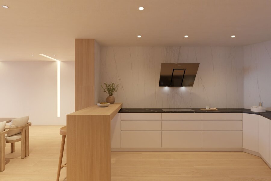 De kwaliteit van dit exclusieve appartement is aanwezig in elk van de elementen die er deel van uitmaken: travertijn marmeren vloeren, bevloering van het terras met synthetisch hout, domotica systeem van KNX, project voor de verlichting, centrale verwarming en airconditioning.