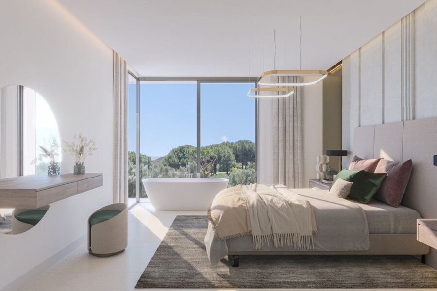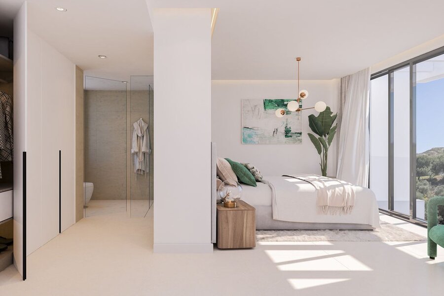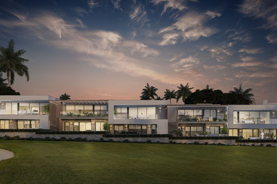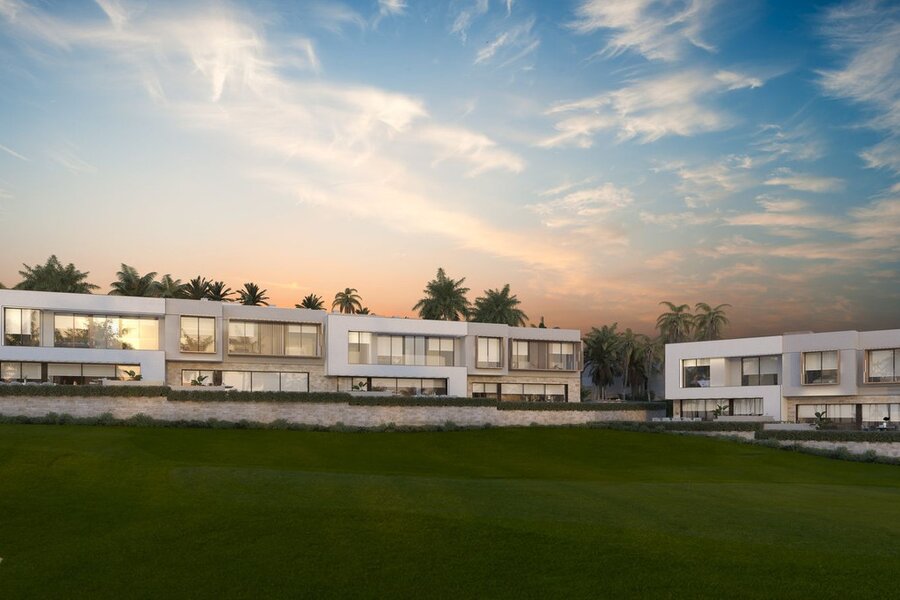 Het moderne en strakke ontwerp van deze herenhuizen is vakkundig uitgevoerd met het belang van licht en ruimte bovenaan het verlanglijstje. De eigentijdse open indeling is ontworpen om naadloos aan te sluiten bij de ramen, van vloer tot plafond, die leiden naar de uitgestrekte privéterrassen en solariums. Deze privé buitenruimtes zijn gecreëerd om het benijdenswaardige uitzicht op de golfbaan te maximaliseren.