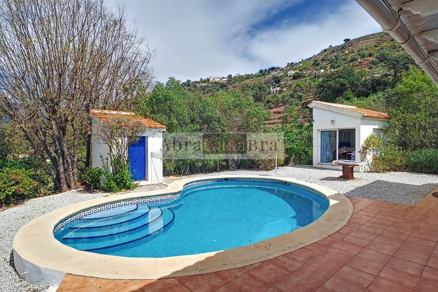 Deze fantastische villa is gelegen in Sayalonga, in de mooie Axarquíastreek, op 15 minuten van het strand van Algarrobo Costa en op 45 minuten van de luchthaven van Málaga.