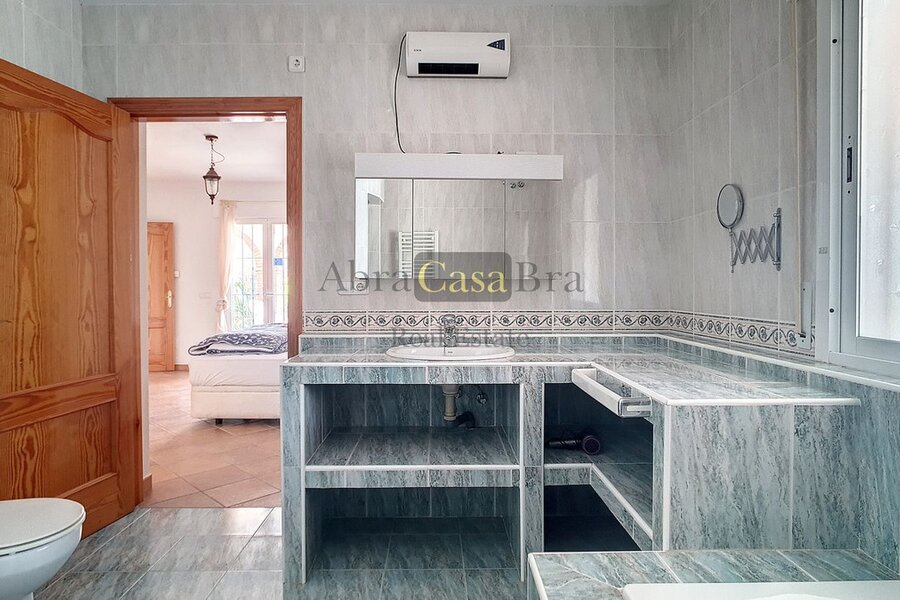De woonkamer en masterbedroom hebben airco en het hele huis heeft vloerverwarming.